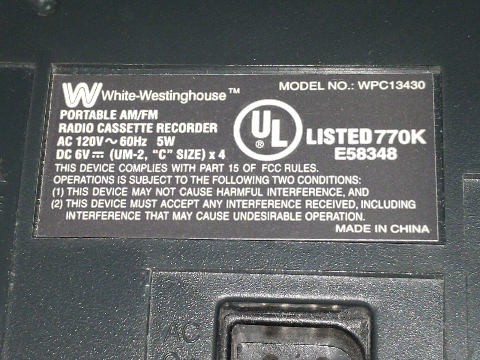 Vintage White-Westinghouse WPC13430 Portable Radio Cassette Recorder - WORKING