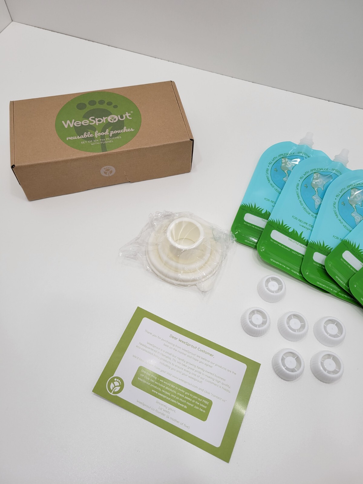 Wee Sprout Reusable Pouches 7 oz, 210 mL, 6 Pouches and 1 Funnel
