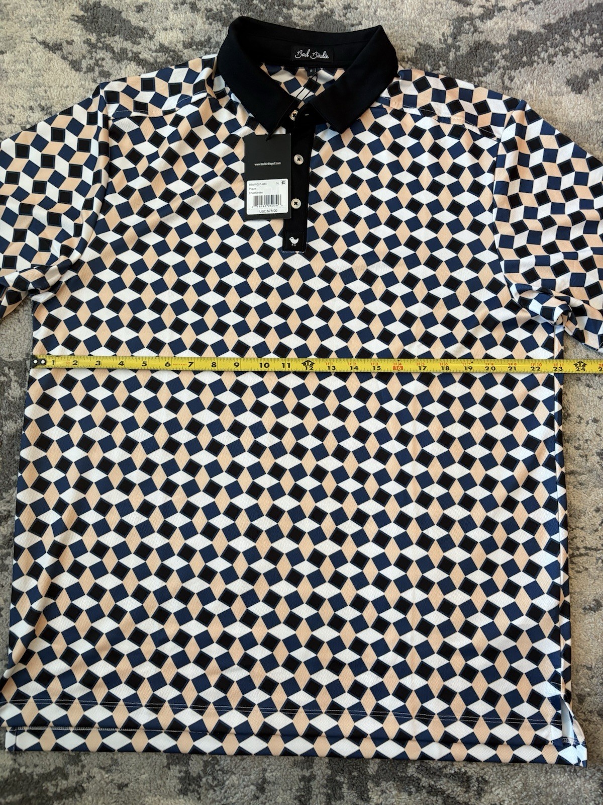 как выглядит Bad Birdie Mens Check Mate Polo Golf Shirt XL 78 фото