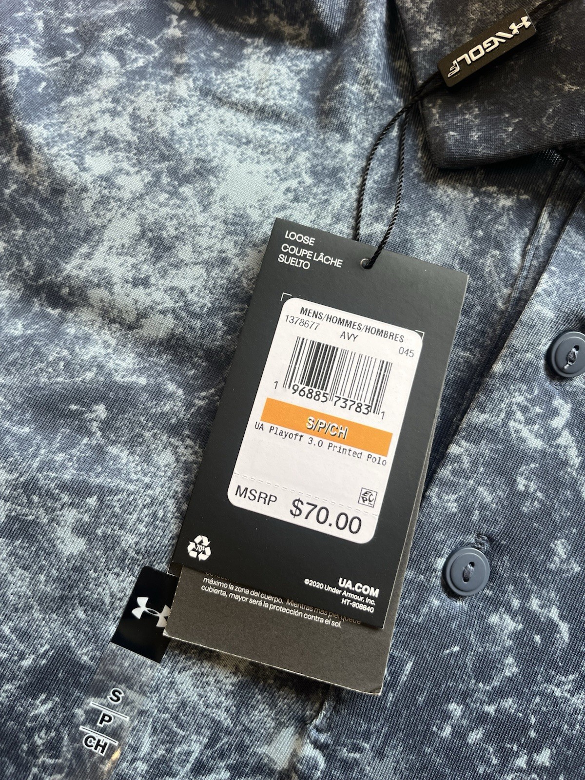 NWT 70 Under Armour Men's Playoff 3.0 Printed Polo UPF40 Blue Small