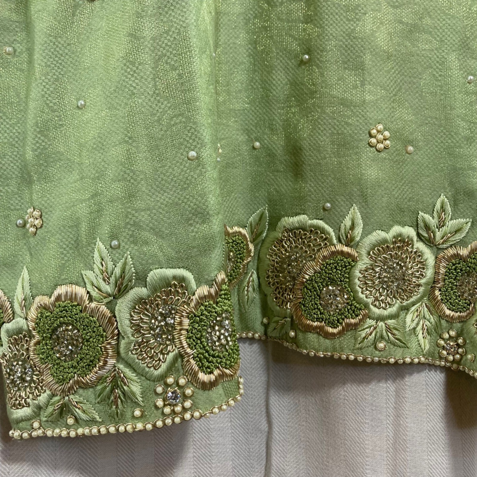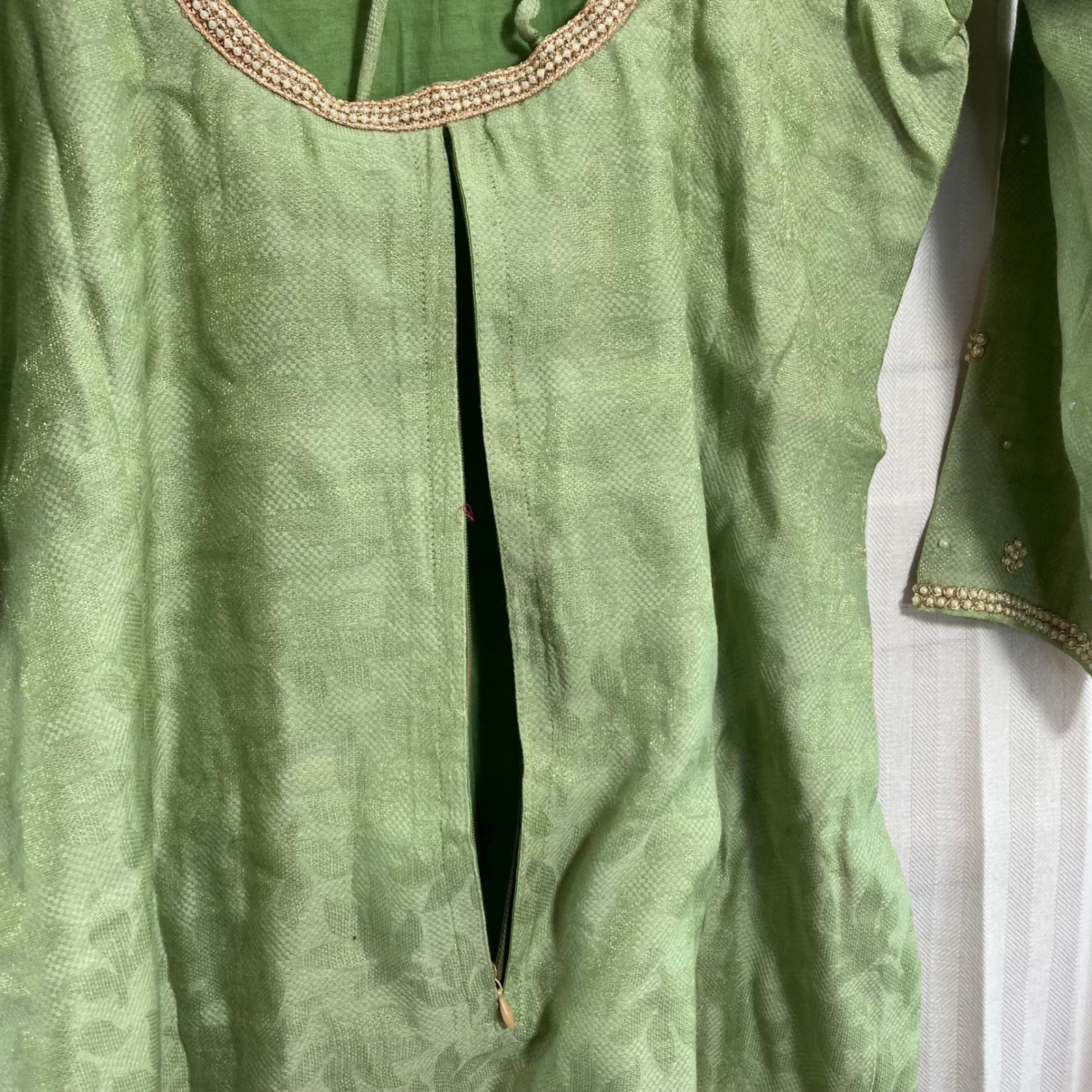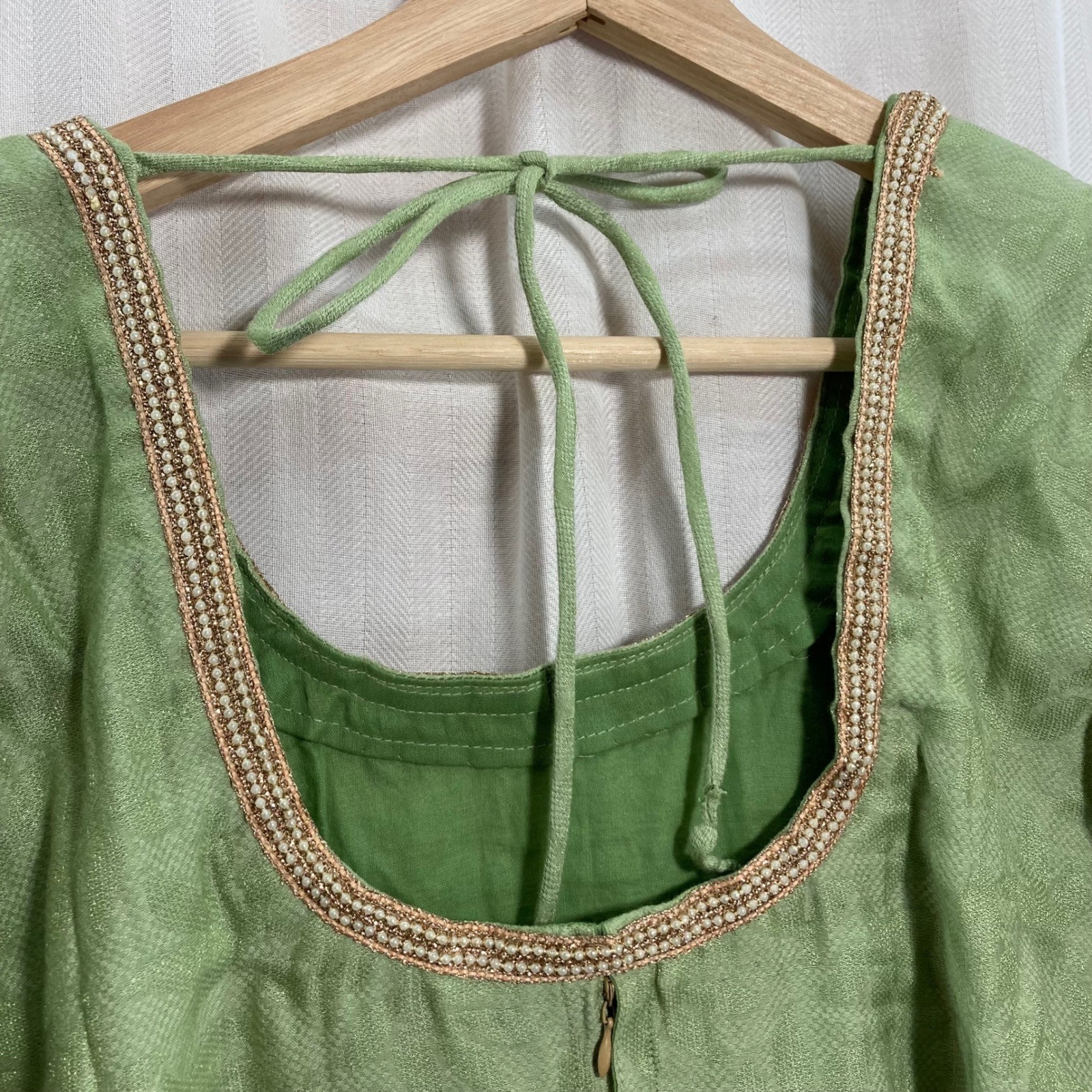 как выглядит Green Embroidered Kurti Tunic Womens 3/4 Sleeve Square Neck Beaded Embellished фото