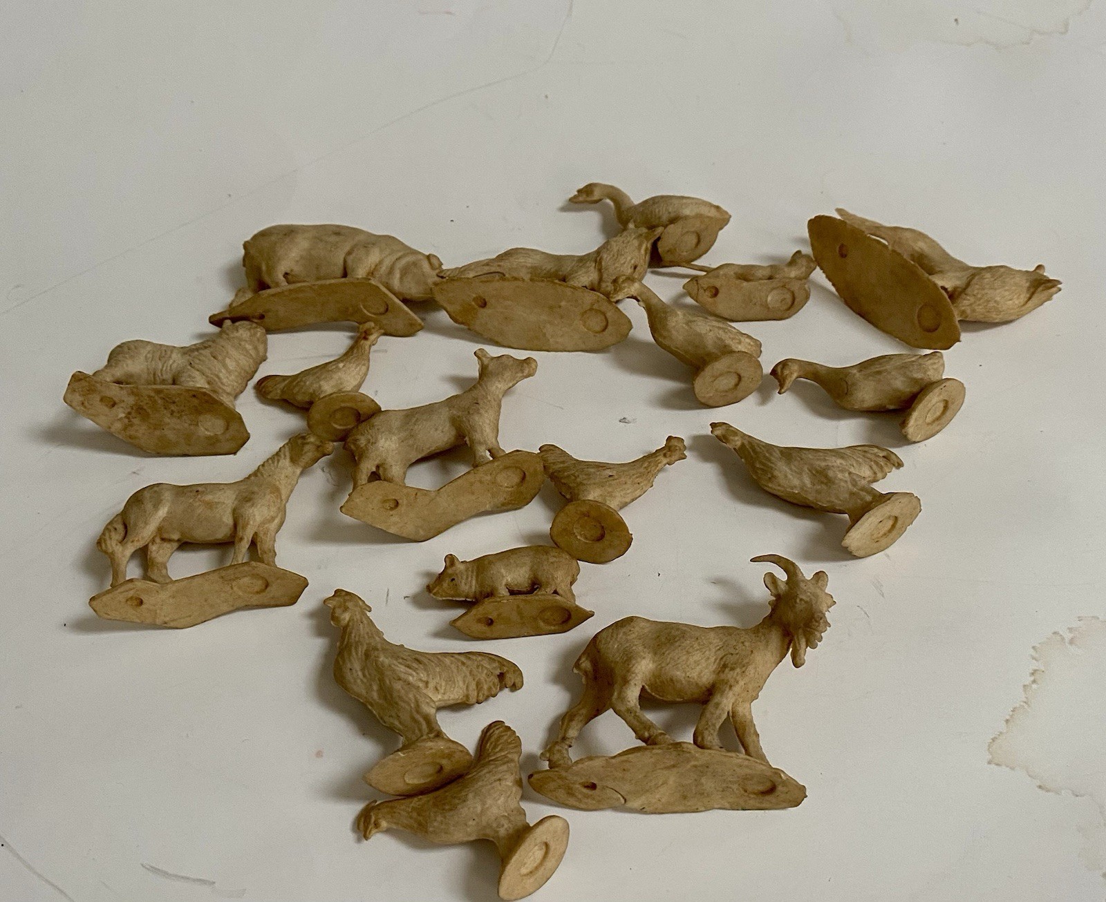 Lot Of 16 Vtg. Hard Plastic Animal Cream Color On Stands 2 1950 s 60 s