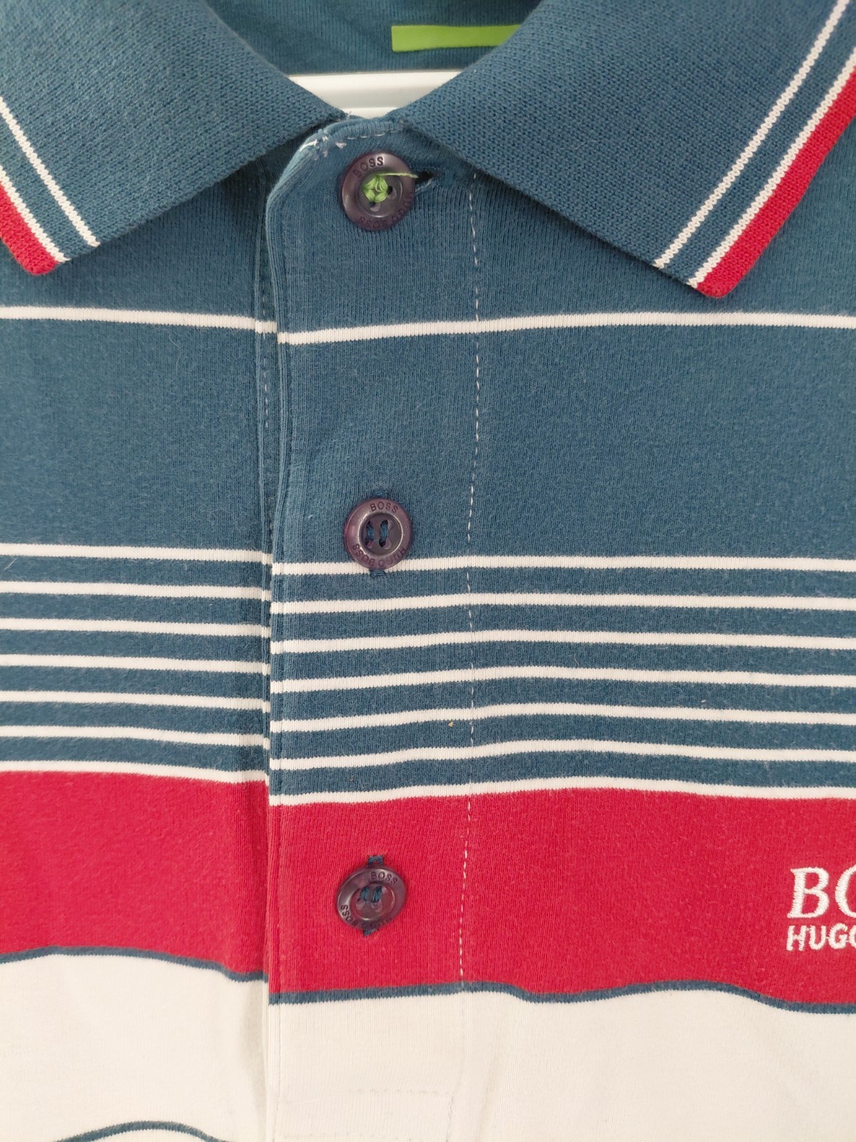 как выглядит Boss Hugo Boss Mens Short Sleeve Blue Striped Polo Shirt Slim Fit Size L фото