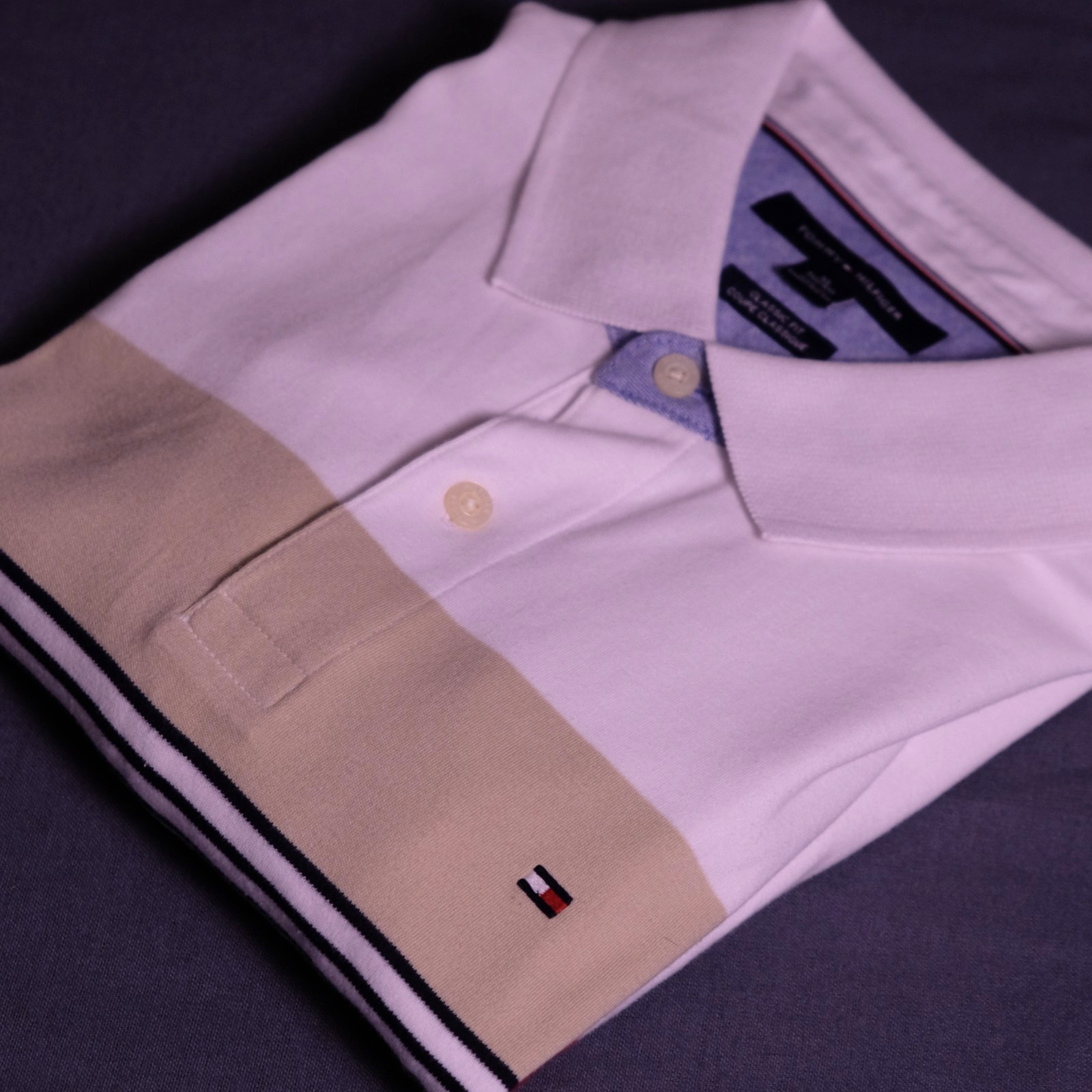 как выглядит Tommy Hilfiger Polo Shirt Colorblock Striped White Mens XL Classic Fit Casual фото