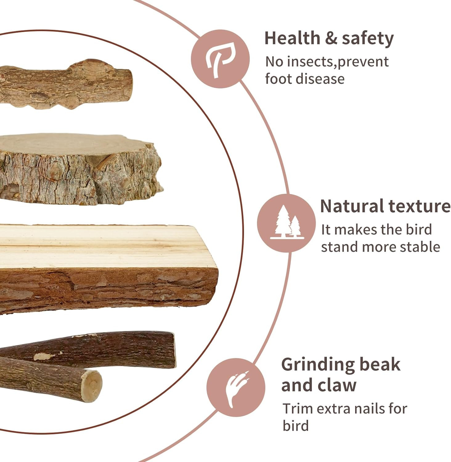 Bird Perches, 6Pcs Natural Wood Birds Stand Branch, Bird Perch Chewing Stick Cag
