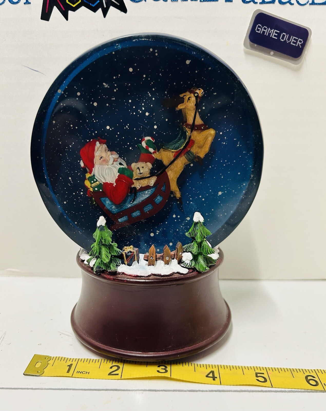 как выглядит VTG Santa Sleigh Reindeer Music Light Changing Resin Snow Globe 8 Songs фото
