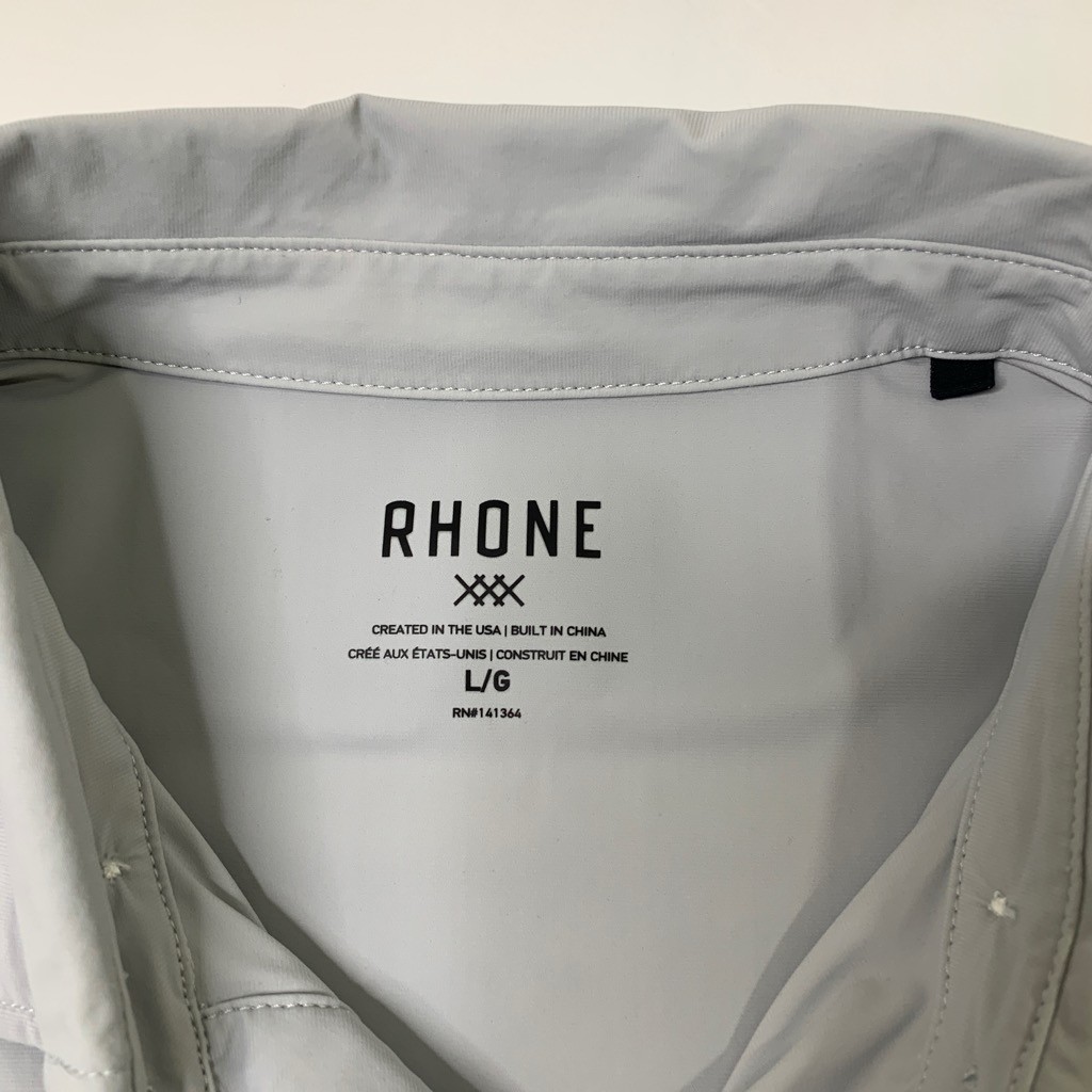 Rhone Polo Shirt Mens L Large Gray Tech Performance Golf UPF 50 Sun Protection