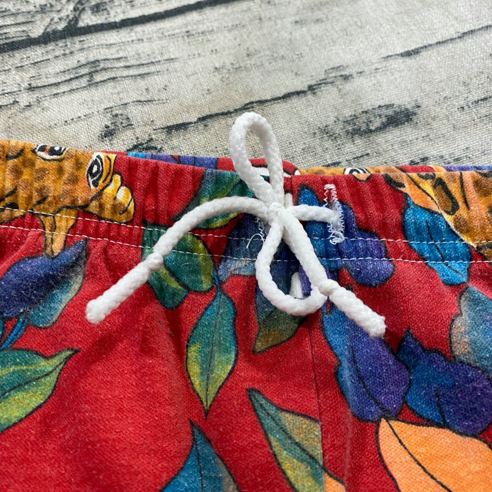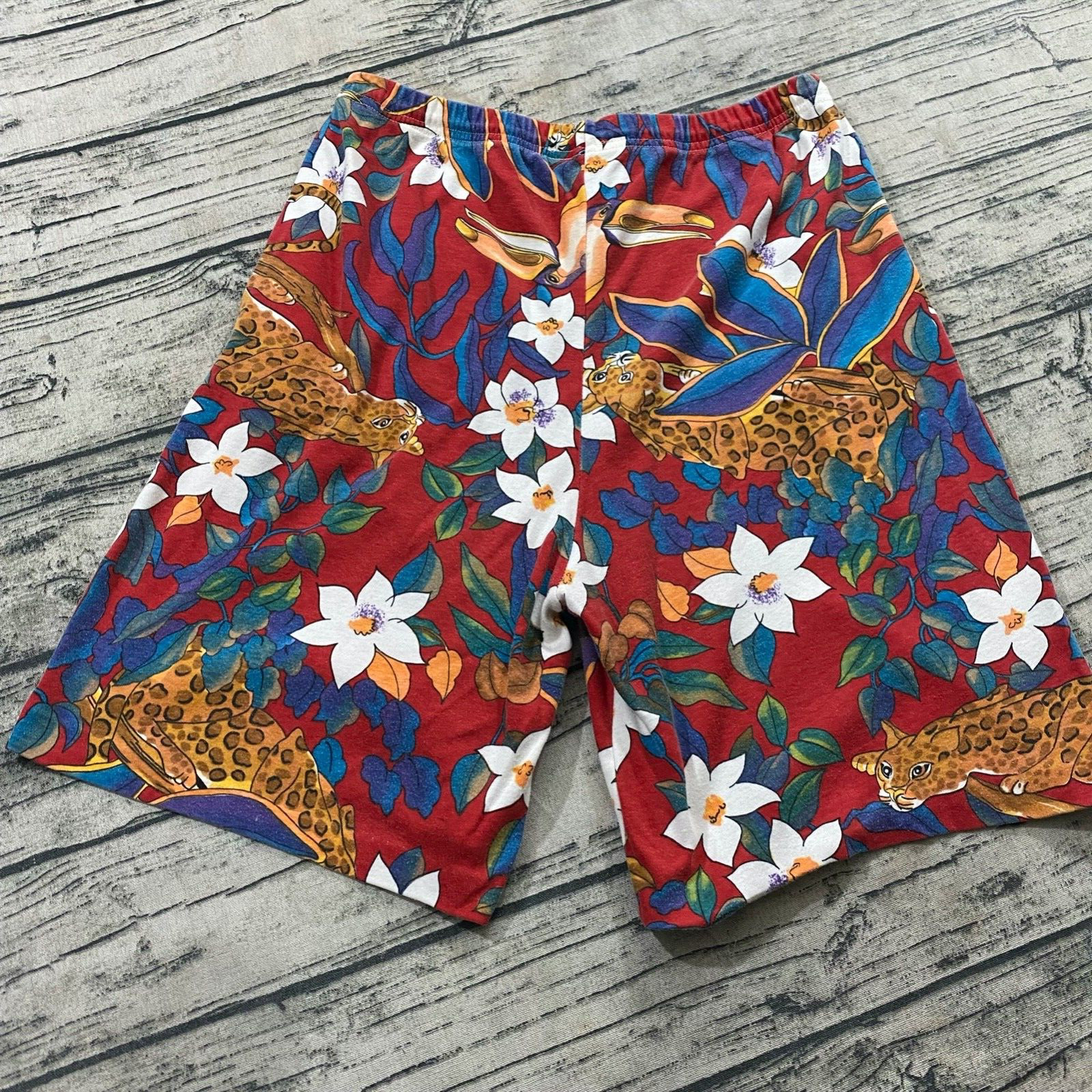 Vtg 70s 80s Hippie Floral Drawstring AOP Art Wear Leopard Tucan Beach Vacation