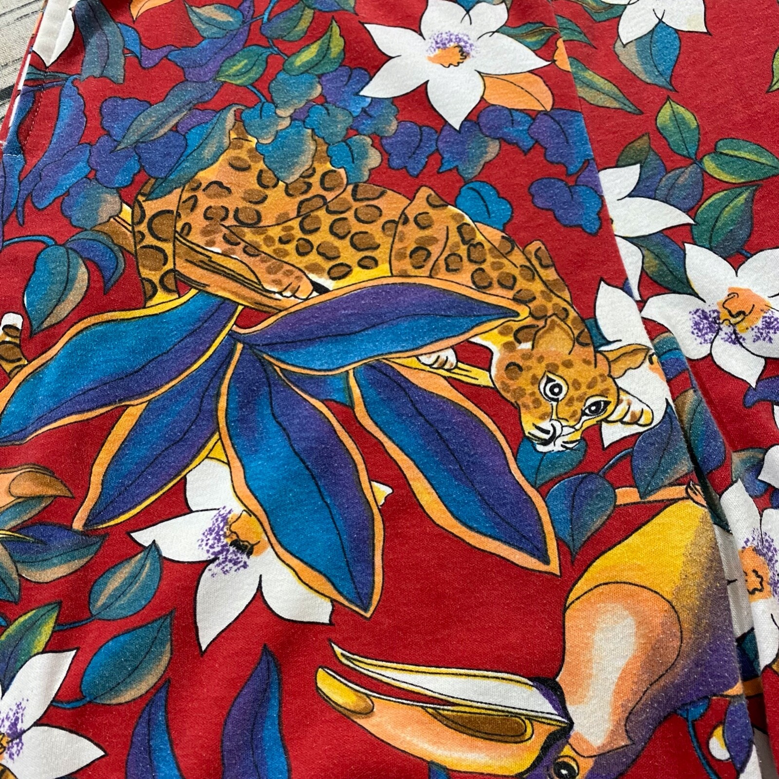 как выглядит Vtg 70s 80s Hippie Floral Drawstring AOP Art Wear Leopard Tucan Beach Vacation фото