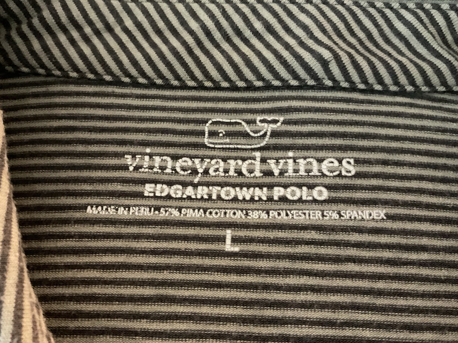 как выглядит Vineyard Vines Edgartown Polo Shirt Mens Large Gray Striped Short Sleeve фото