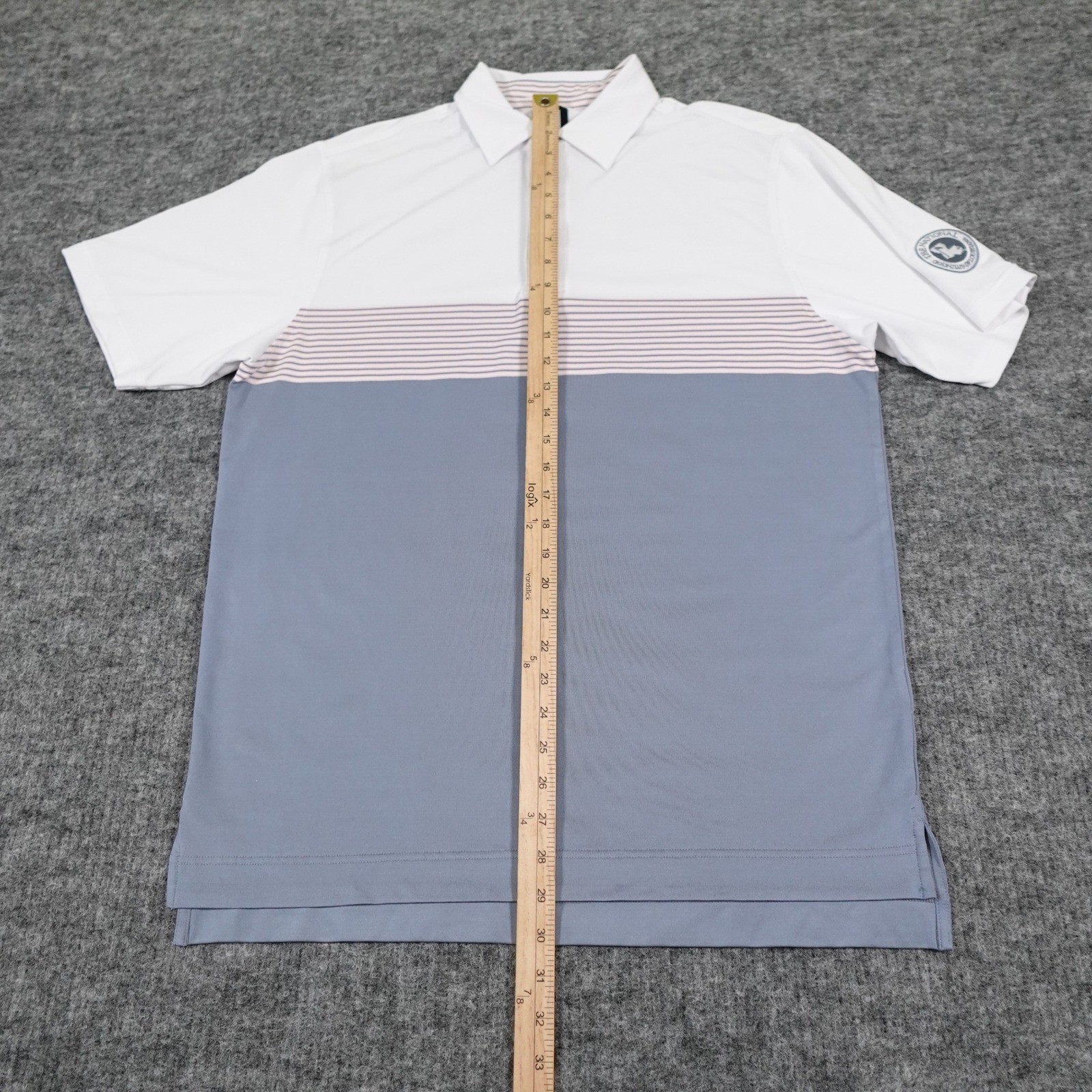 как выглядит FootJoy Color Block Performance Polo Shirt Mens Medium White Gray Pink Golf фото