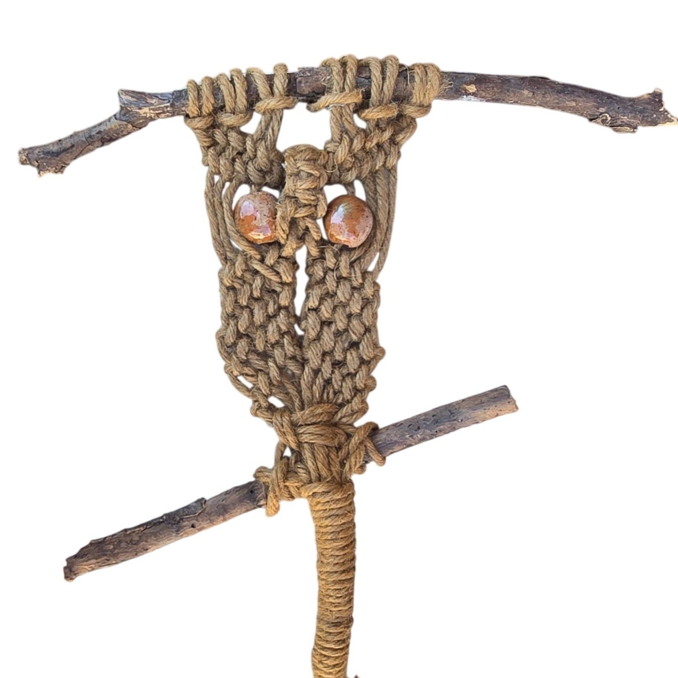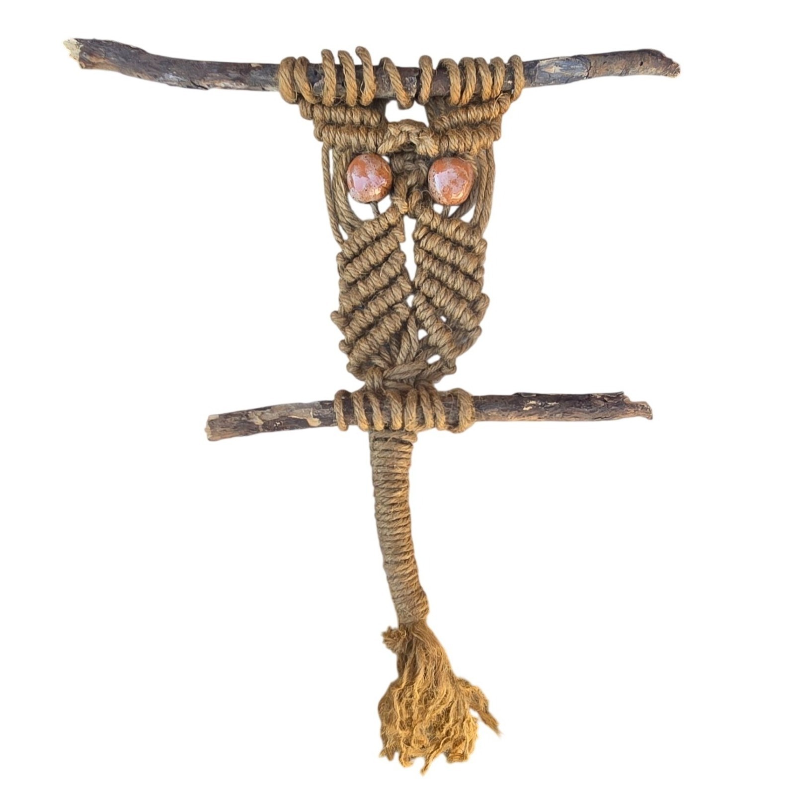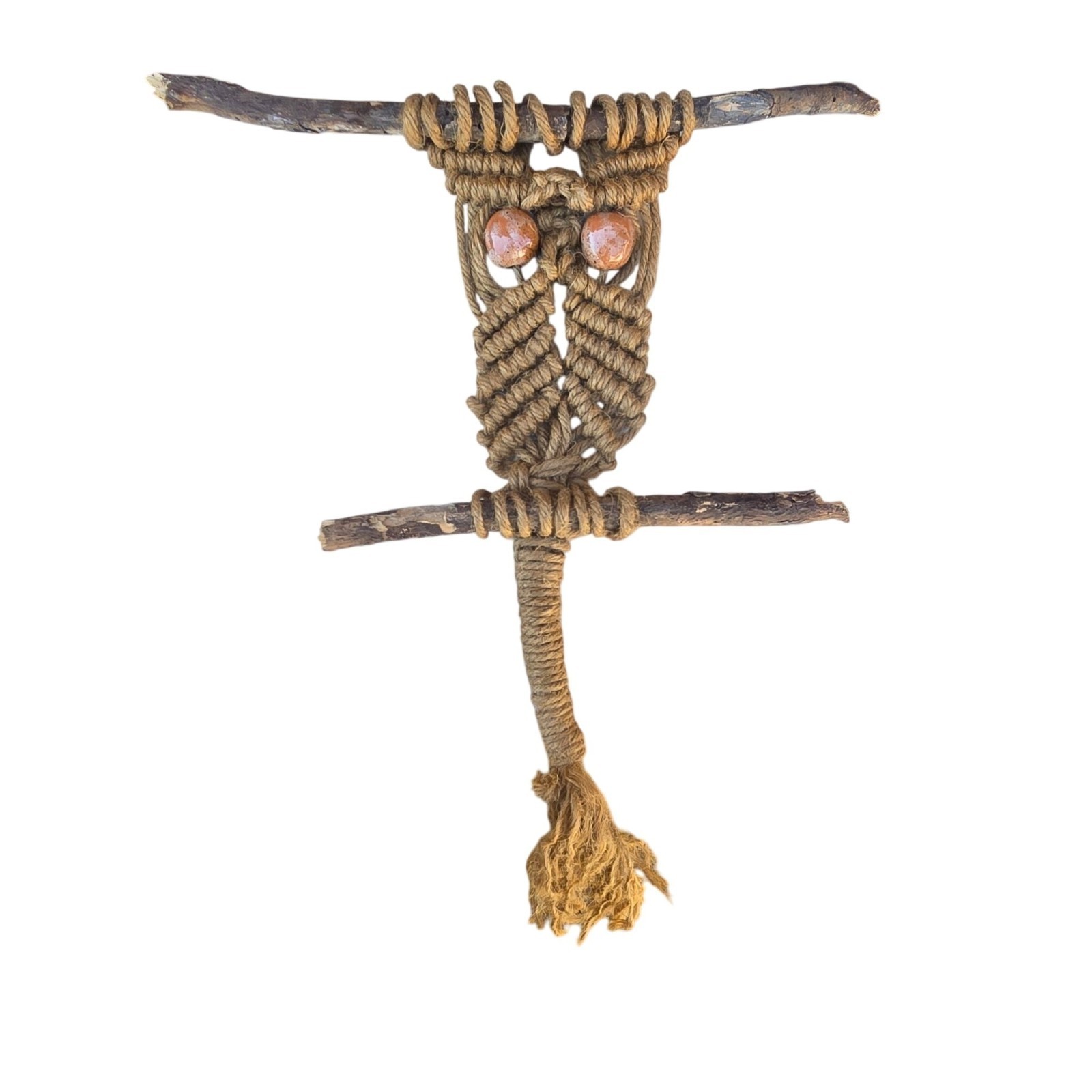 Vintage Macrame Owl Wall Hanging Handmade Boho D cor Retro Fiber Art Farmhouse