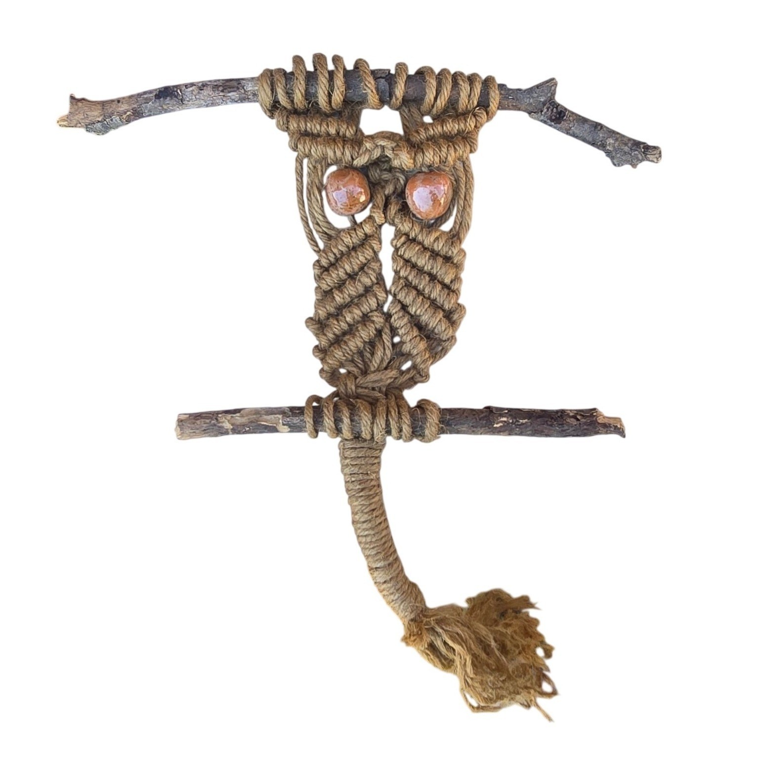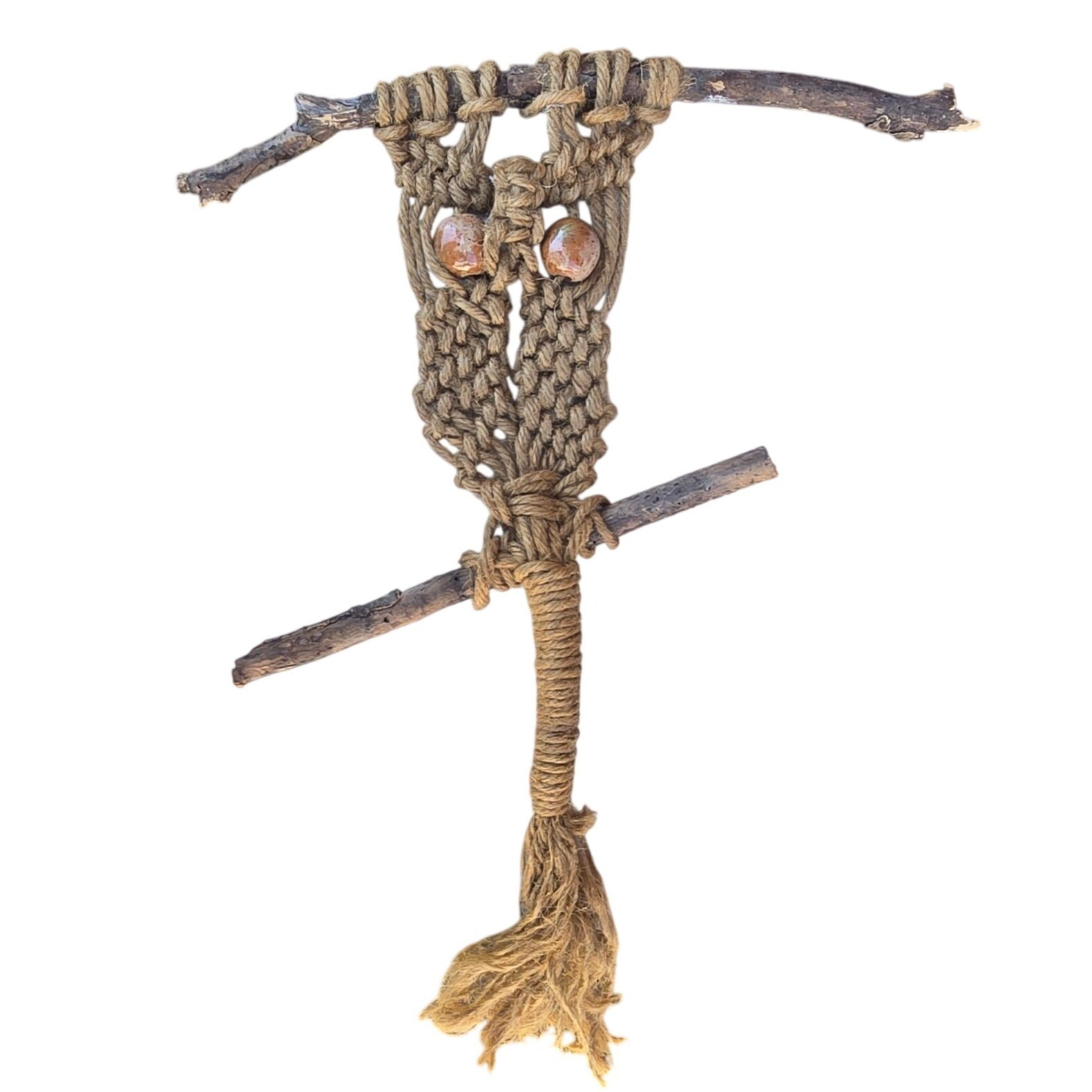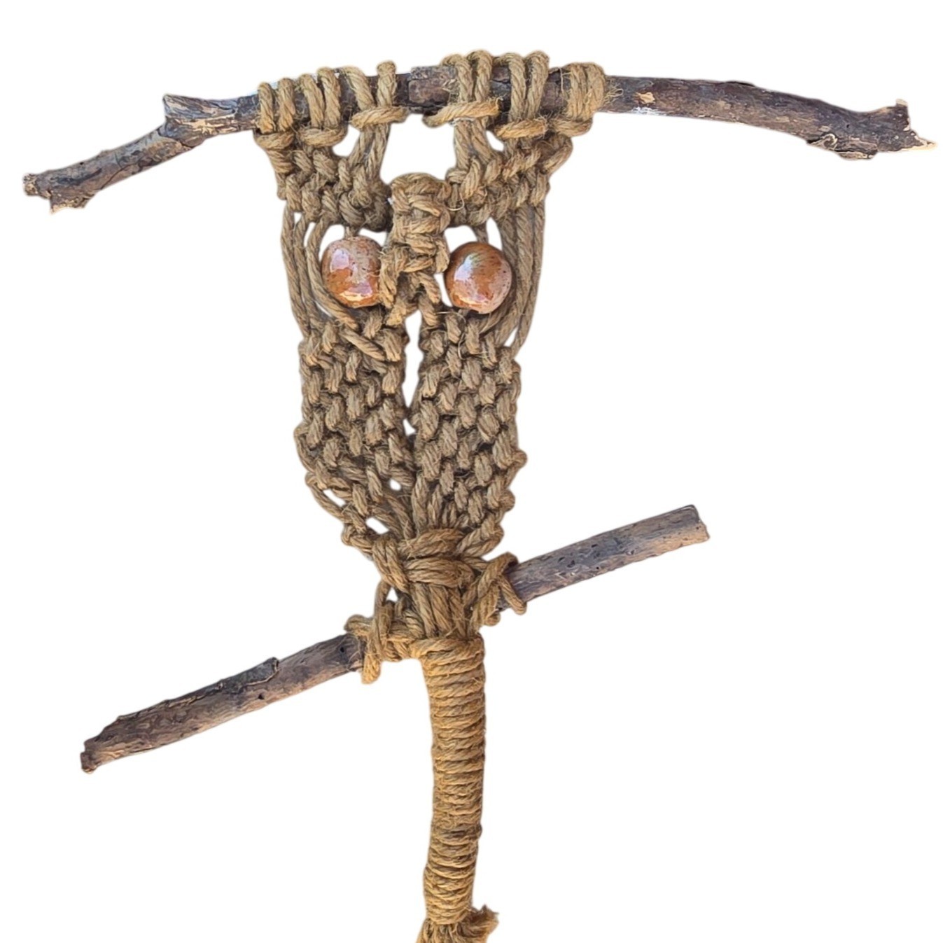 Vintage Macrame Owl Wall Hanging Handmade Boho D cor Retro Fiber Art Farmhouse