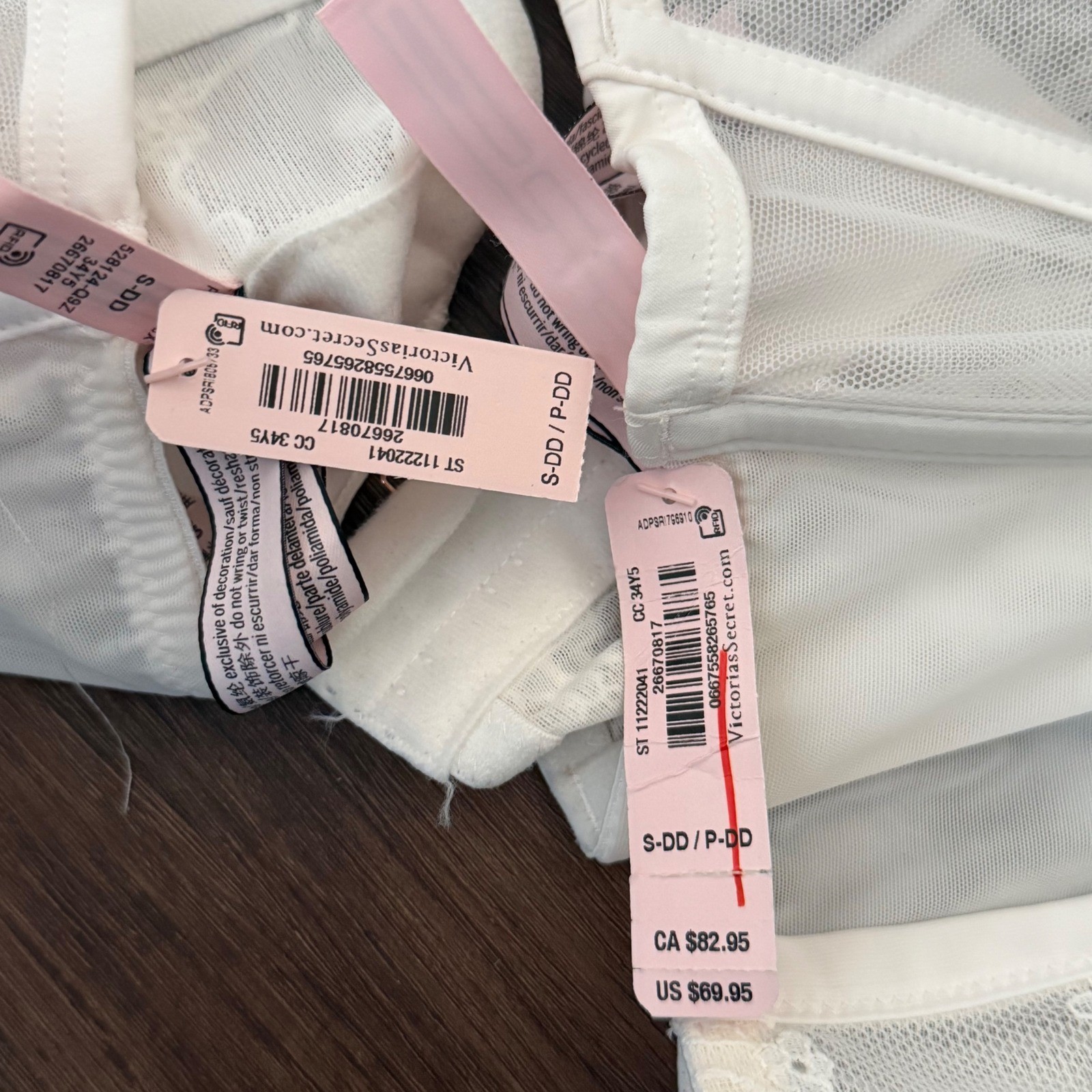 Victoria's Secret Corset Top White Lace Sheer Boned Strappy Lingerie S-DD