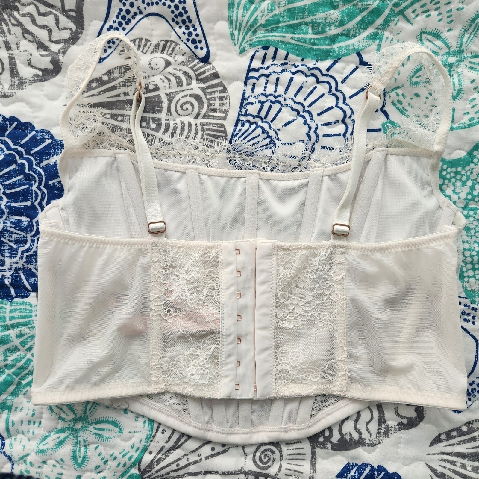 как выглядит Victorias Secret Corset Top White Lace Sheer Boned Strappy Lingerie S-DD фото