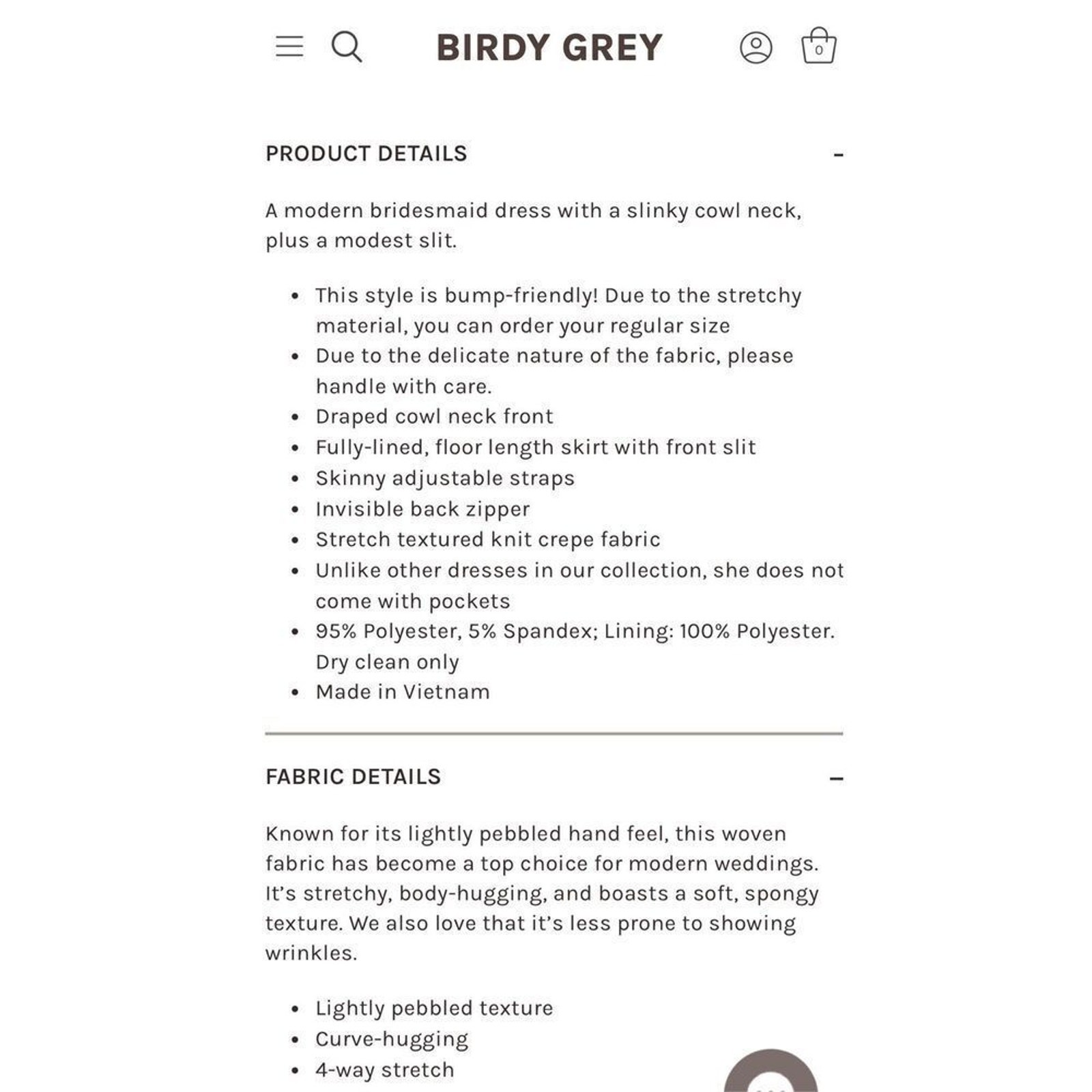 Birdy Grey Bridesmaid Dress Womens Large Desert Rose Ash Cowl Neck NWT Wedding