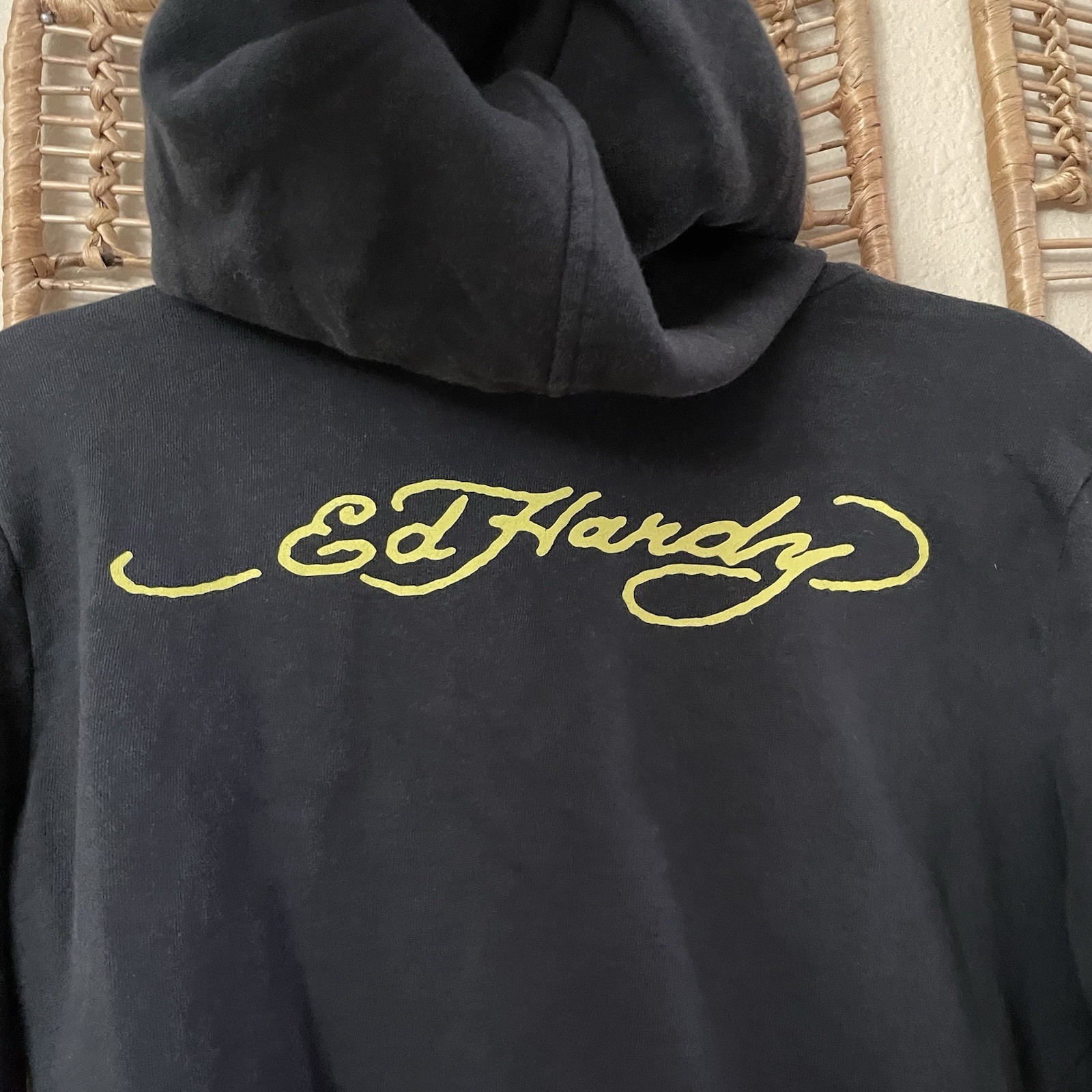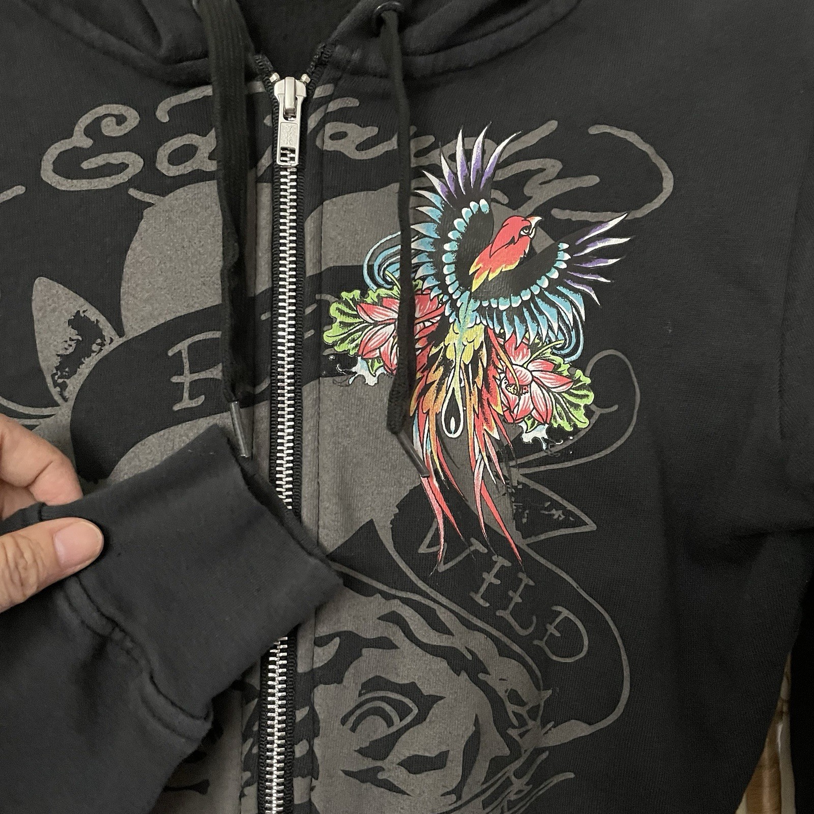 Vintage Y2K Ed Hardy Women s Cropped Zip Up Hoodie Phoenix Tattoo Sz L B26