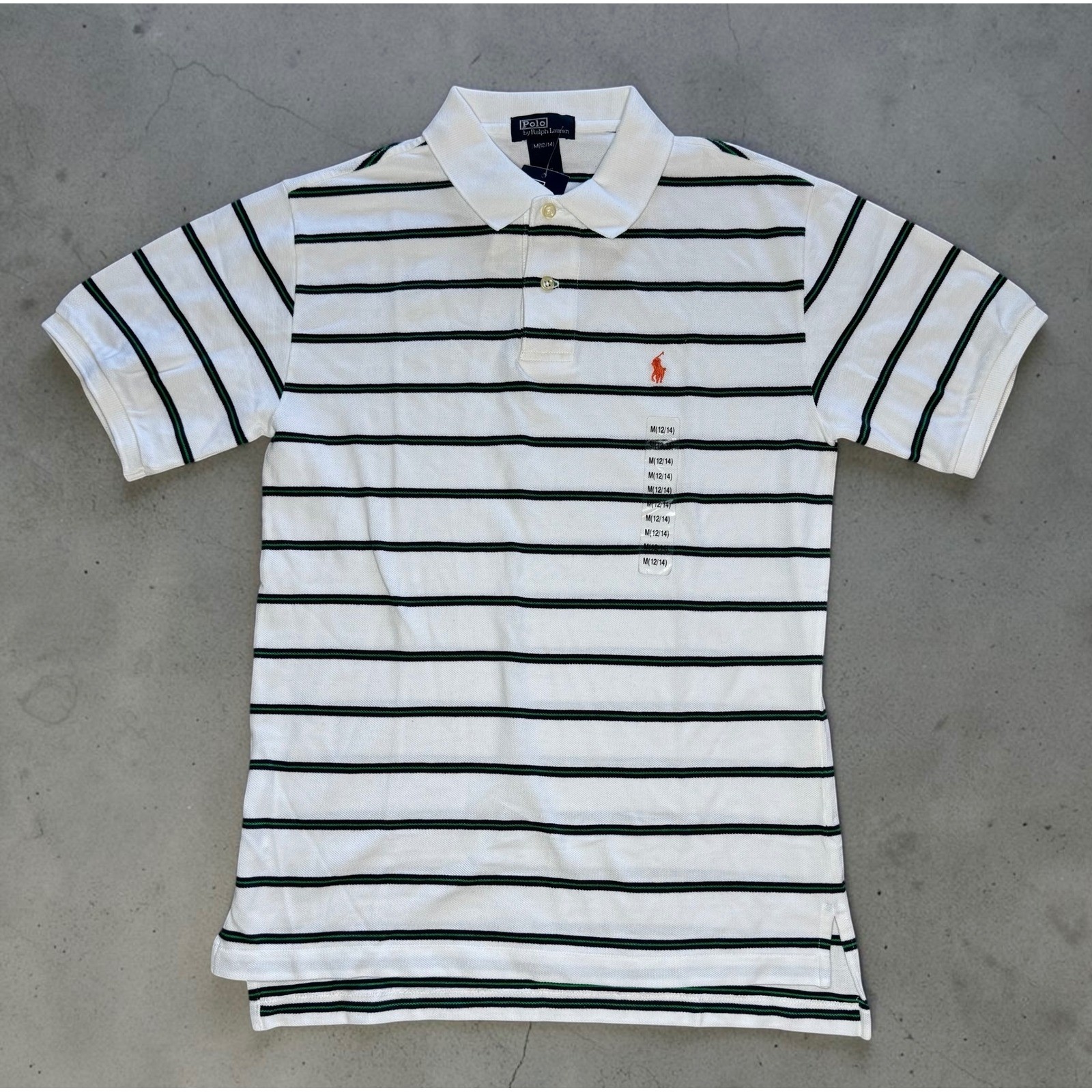 Polo Ralph Lauren Boys Youth White Striped Cotton Polo Shirt Size M 12-14 NWT