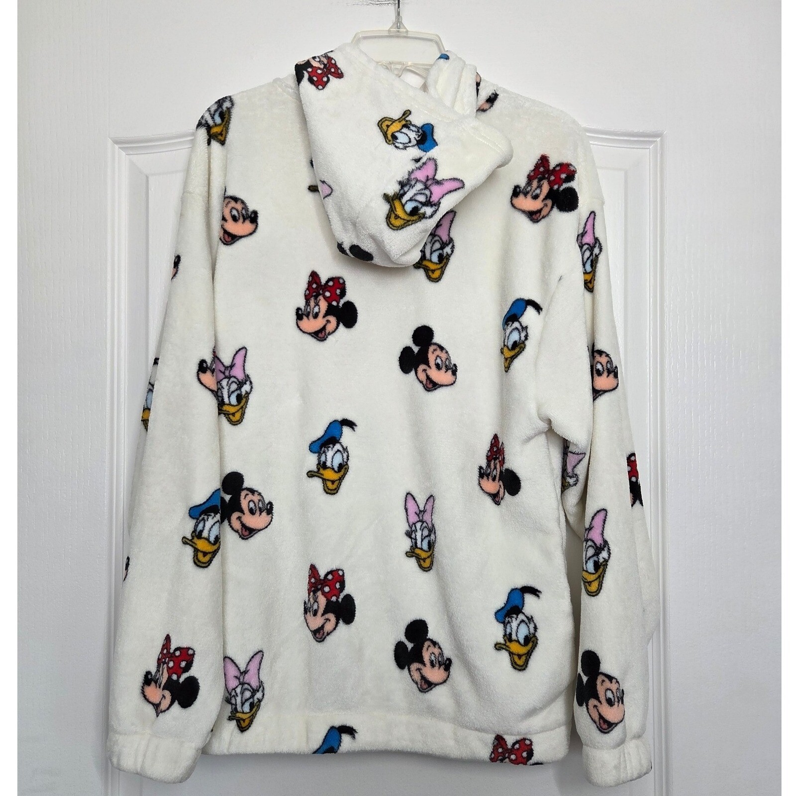 как выглядит Disney Fuzzy Fleece Hoodie Mickey Mouse Friends Print Pullover Sweatshirt L фото