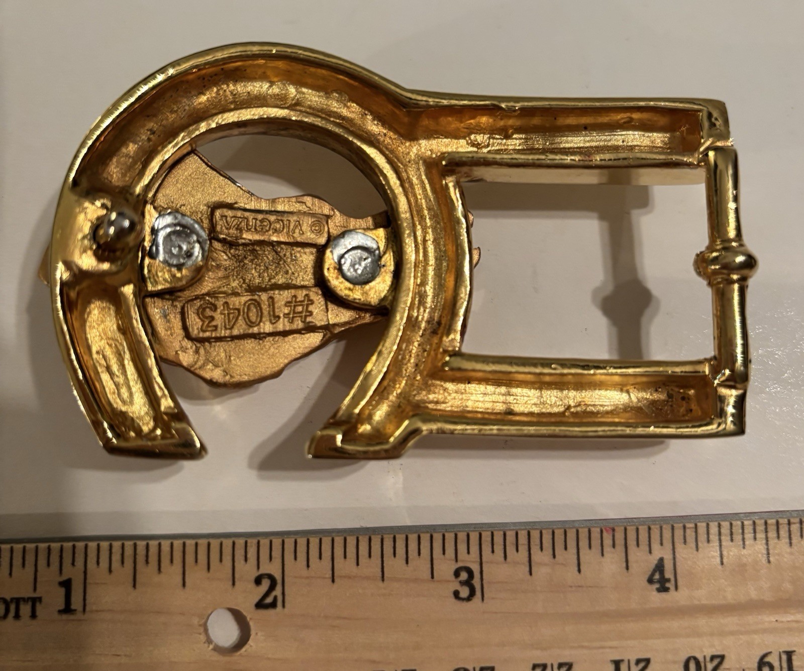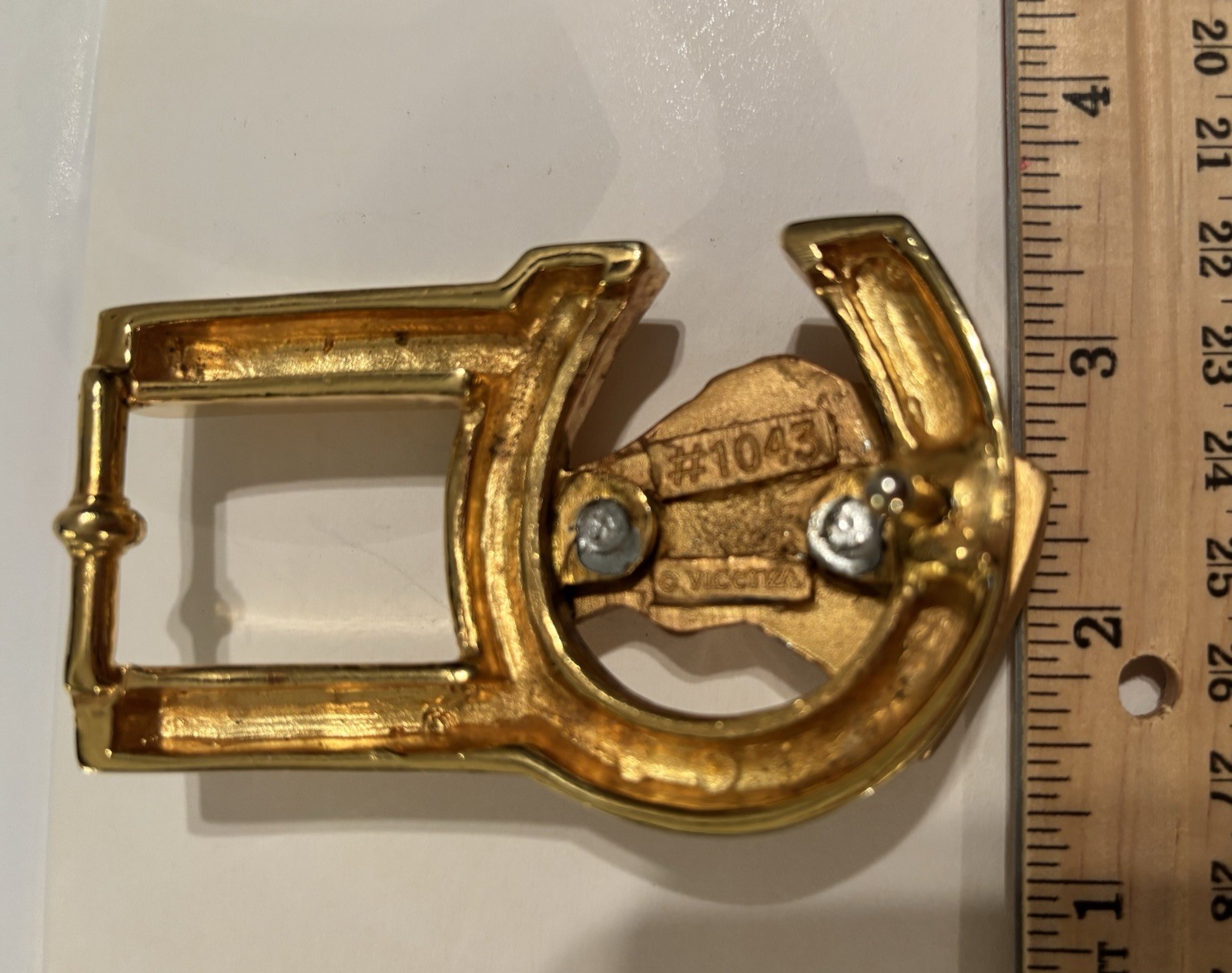 Vtg Vicenza Belt Buckle Horse Head / Horseshoe . Heavy Piece .Gold Tone. Derby
