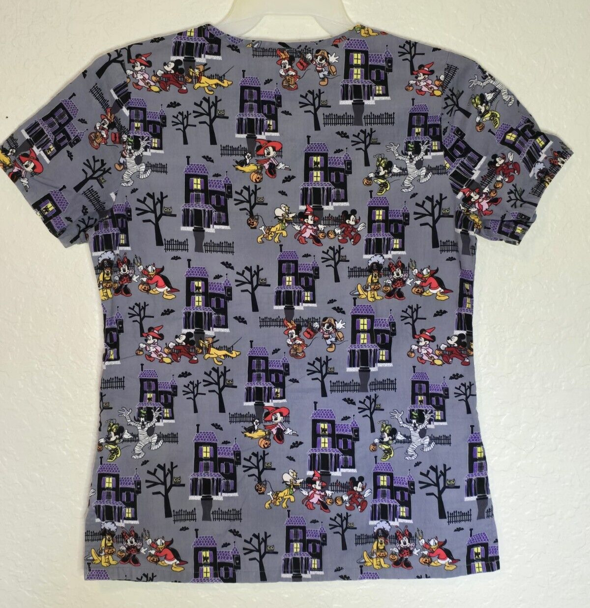 Disney Haunted House Scrub Top Mickey, Minnie, Pluto, Goofy Halloween Size Small
