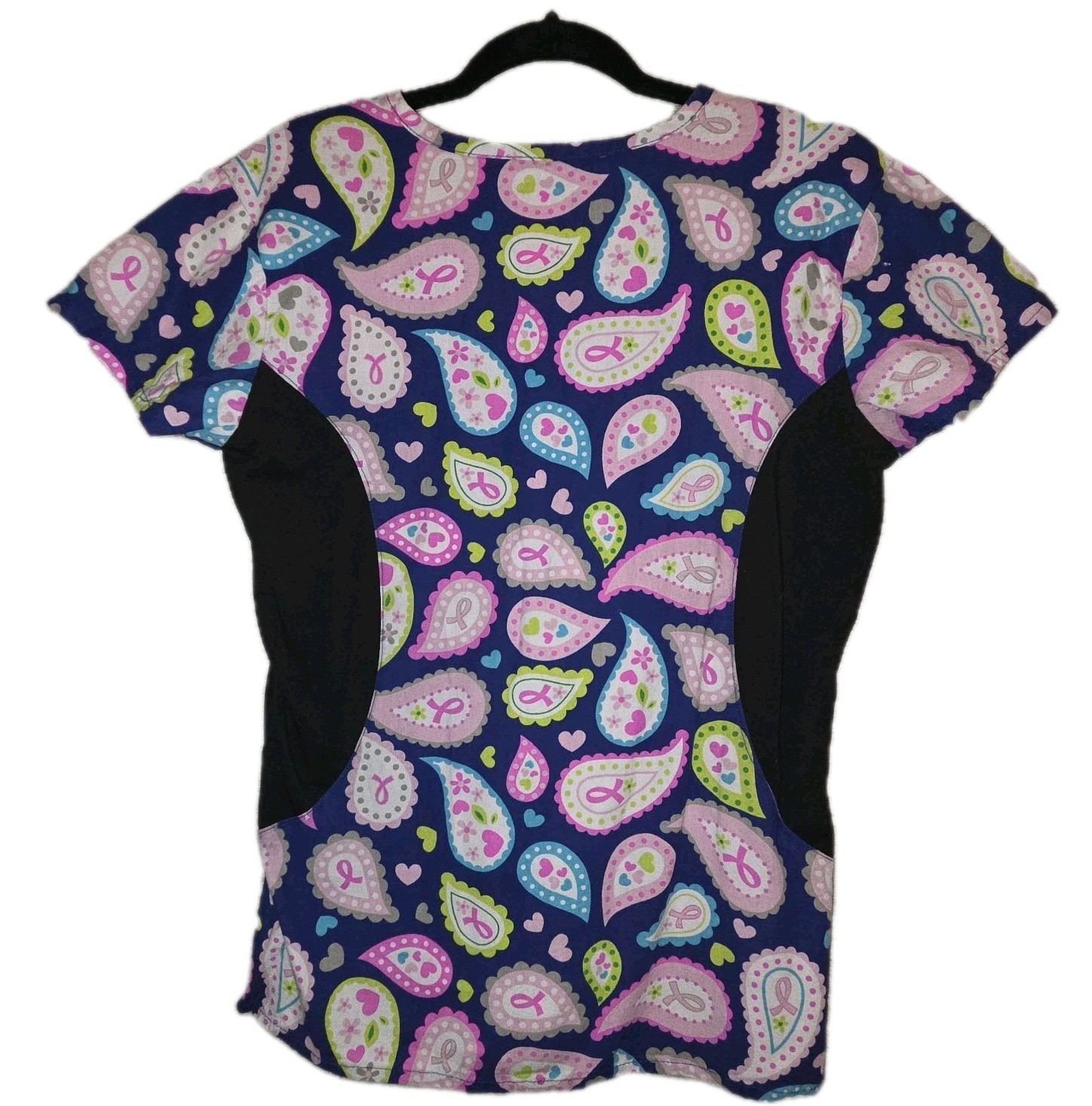 Divine Scrubs Size Small Pink Ribbon Paisley Medical Uniform 100 Cotton Top