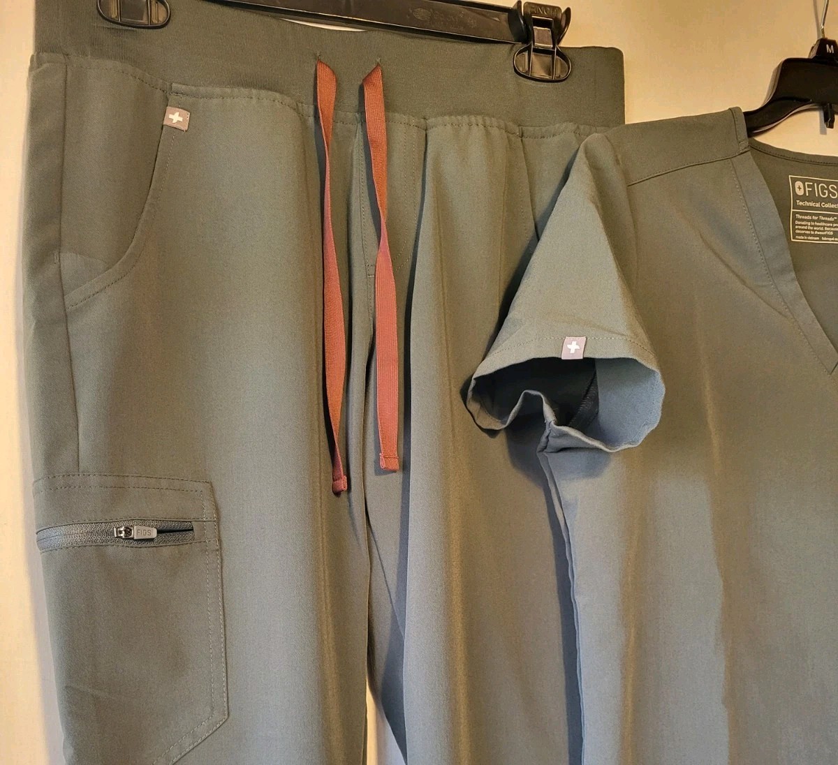 как выглядит FIGS Technical Collection Jogger Scrub Set Womens Sm Top Sm Petit Bottom Olive фото