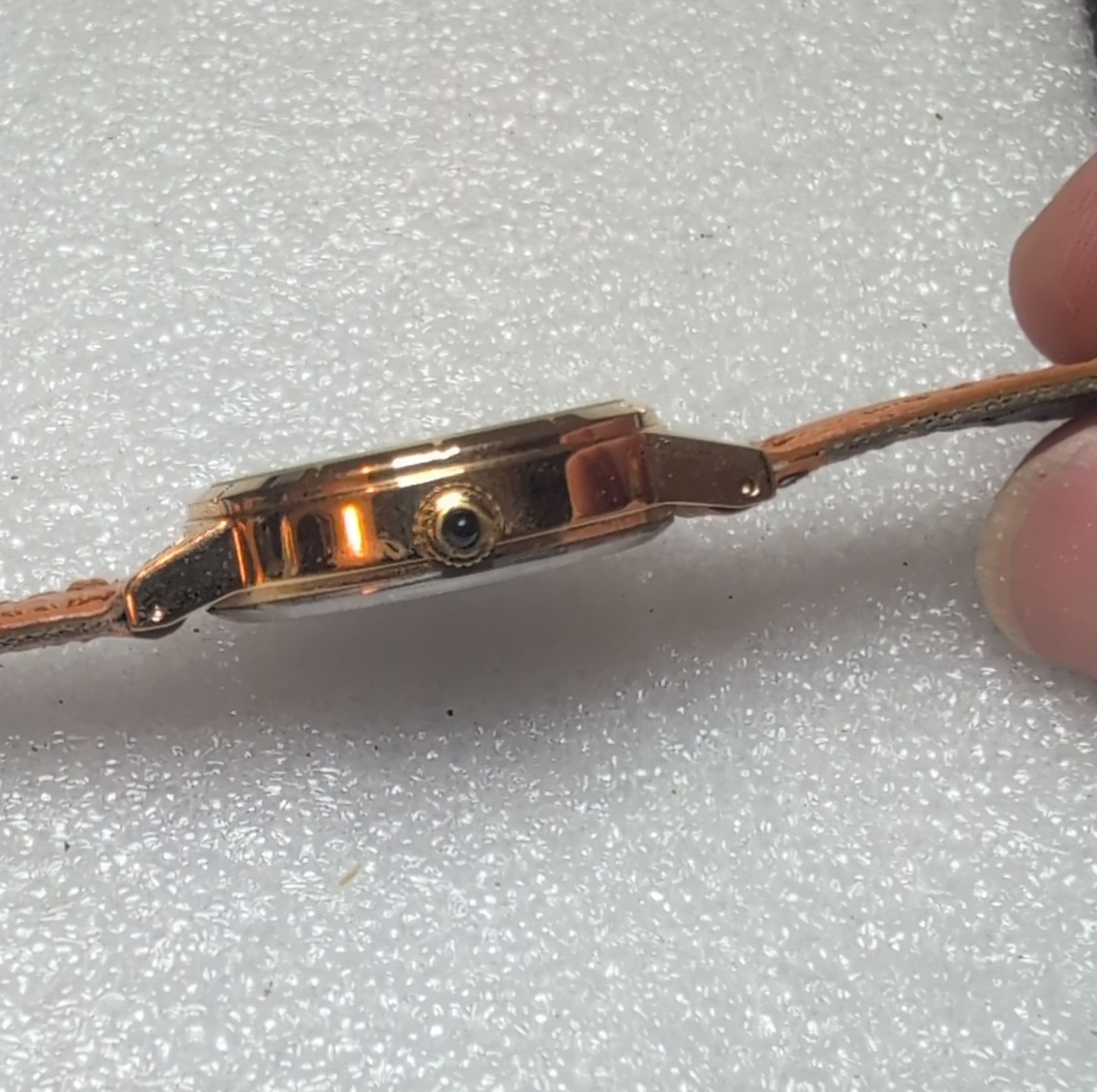 Vintage Walt Disney Mickey Mouse Quartz watch Gold faced brown leather strap.