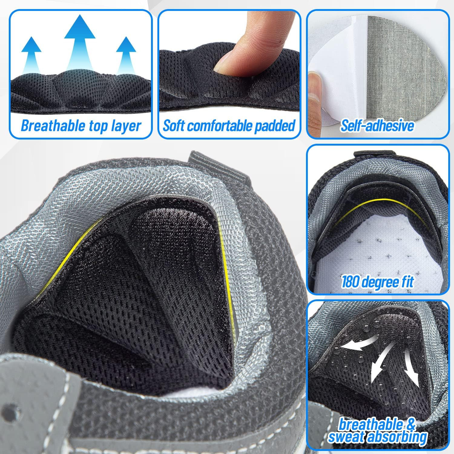 Heel Cushion Inserts Self Adhesive Shoe Heel Pads Black Mesh 8 Pcs