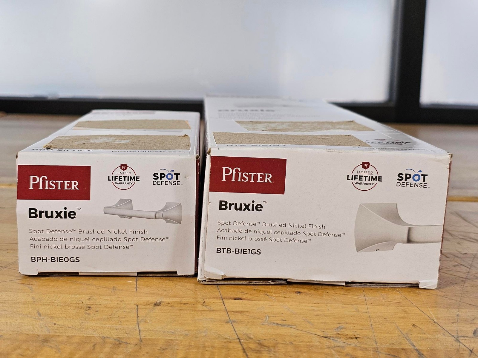Pfister Bruxie 18 Bathroom Towel Bar Toilet Paper Holder Set in Brushed Nicke