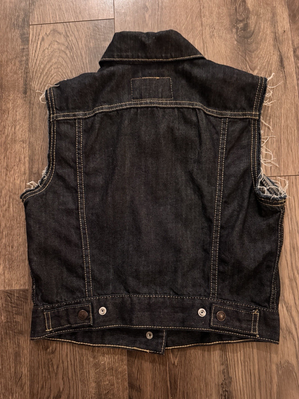Levi s Women s Black Denim Vest Cut Off Sleeveless Trucker Jacket Cropped Raw M