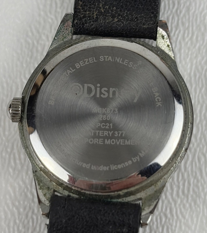 • Vintage Disney Mickey Mouse Watch MCK873 Women Ladies Kids Black Leather Band
