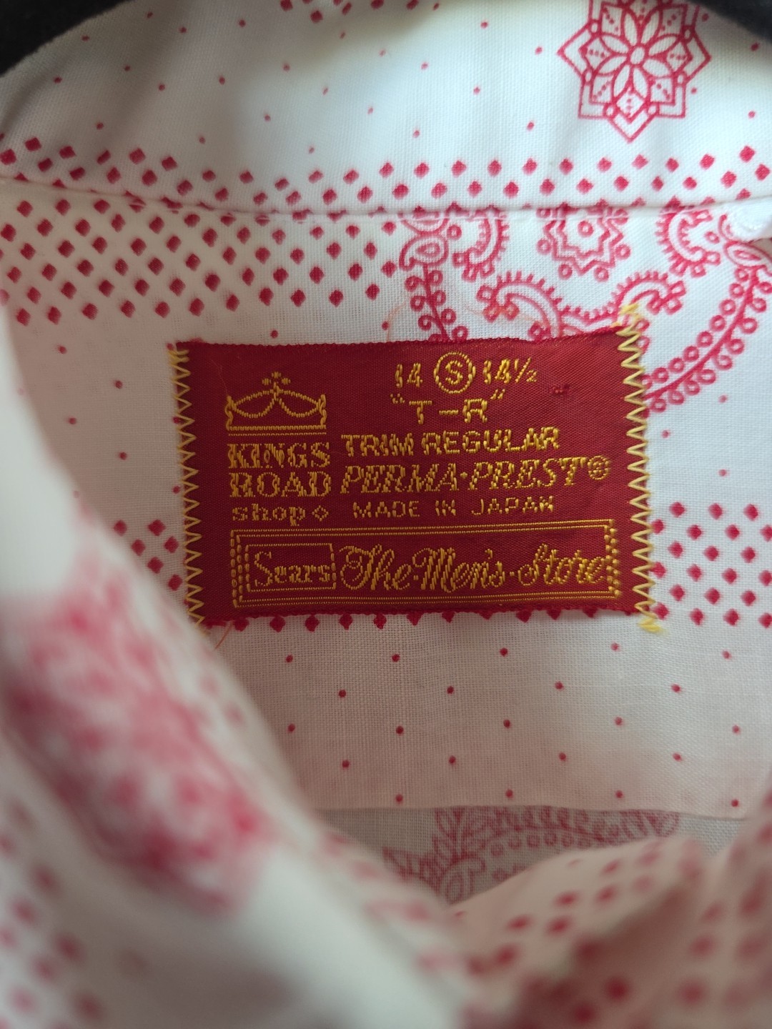 Vintage 70s Kings Road Sears Mens Shirt Red White Medallion Print Japan Disco S