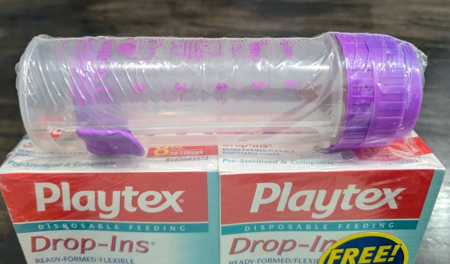 Vintage 1998 Playtex Drop-Ins Baby Bottle Liners with Eazy-Feed Holder - Sealed