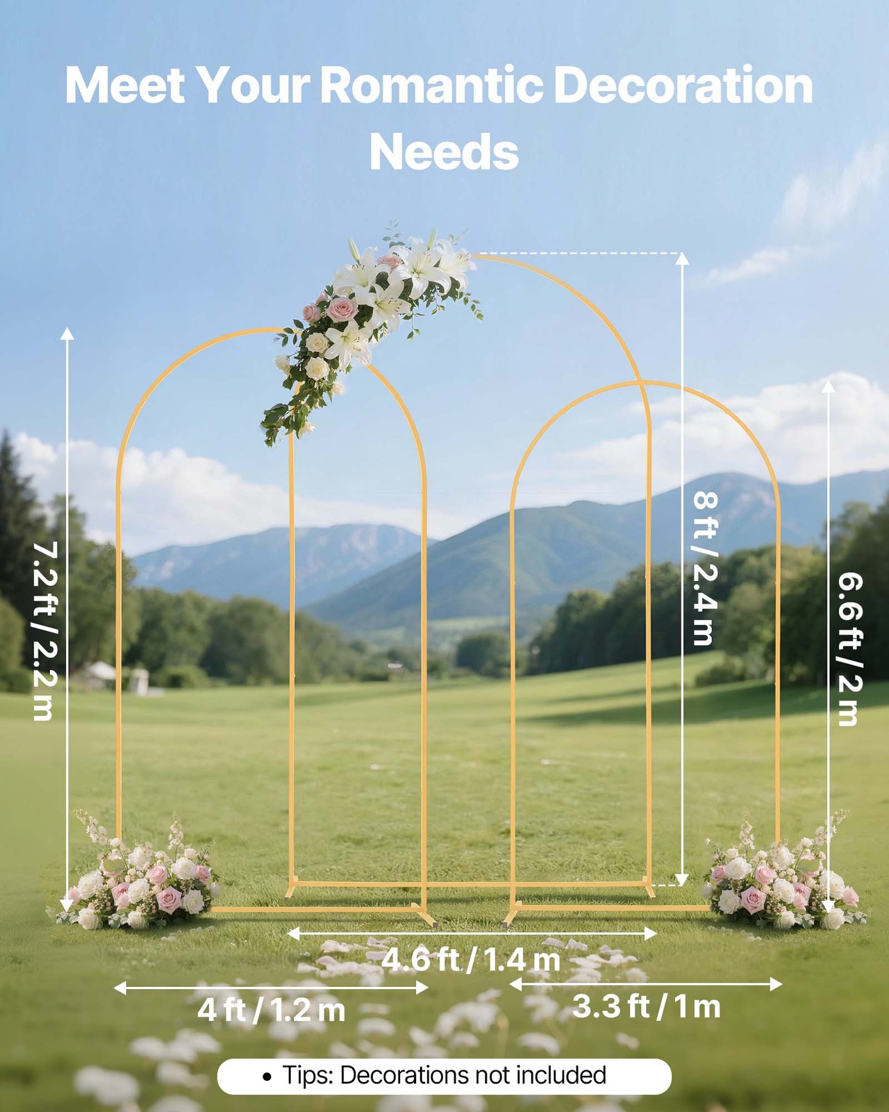 VEVOR Arch Backdrop Stand Metal Arch Backdrop Stand 8/7.2/6.6 ft 3 PCS Wedding
