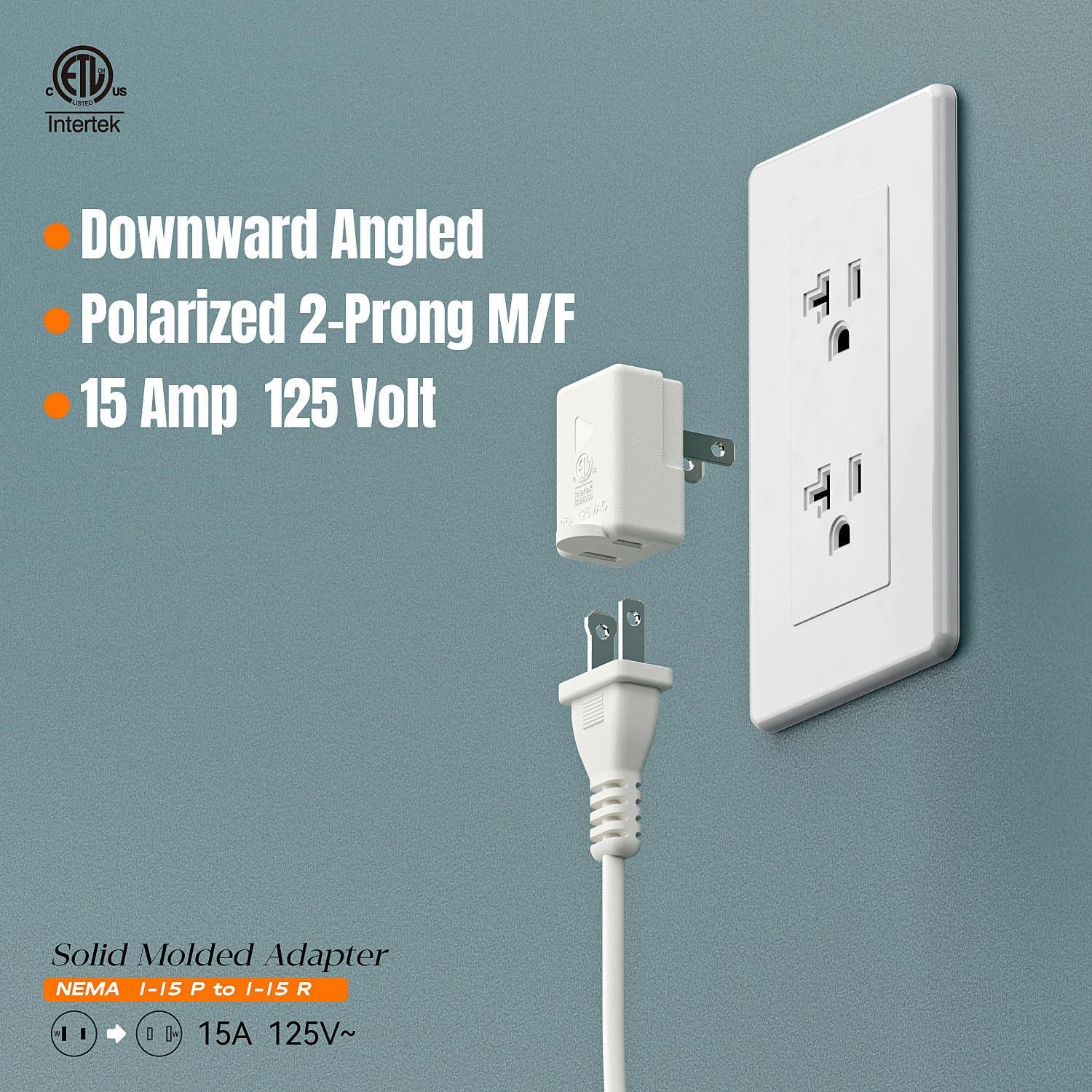 Polarized 2-Prong L Type Adapter, Vertical Right Angled down Angle AC Adapter, N