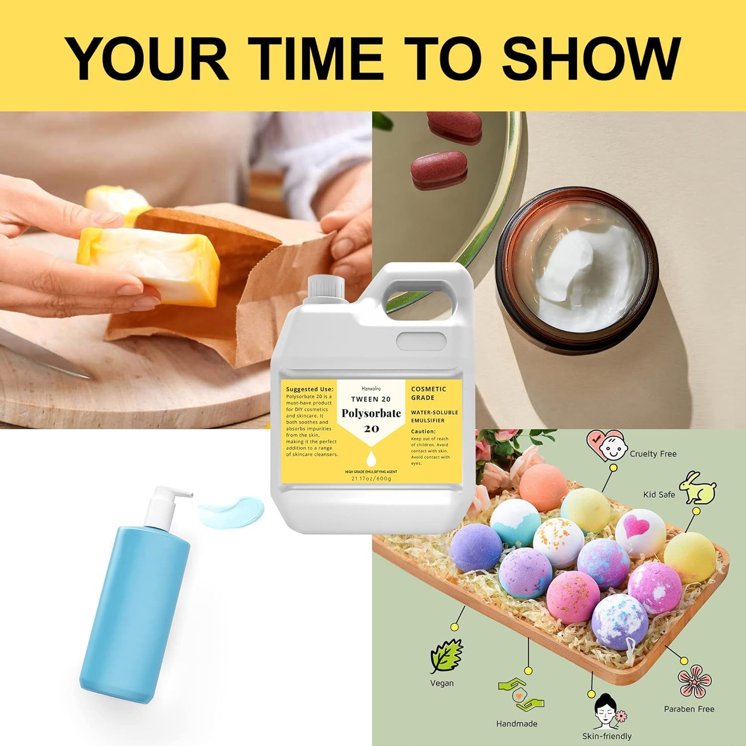 21.17 Oz Polysorbate 20 Emulsifier, Premium Polysorbate 20 Tween 20 Liquid, 10