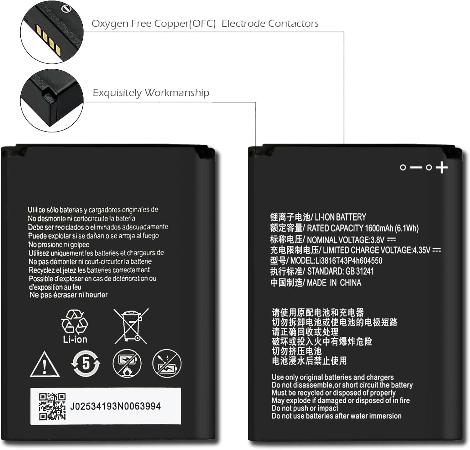 New Upgrade Li3816T43P4H604550,High-Capacity Replacement Battery for ZTE Blade