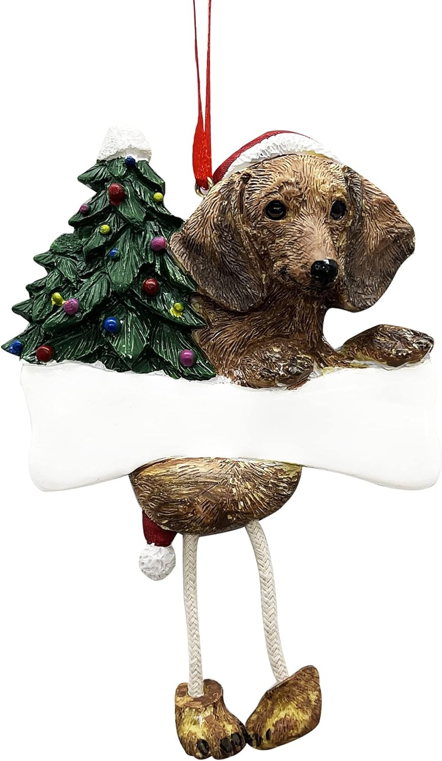 Item Type Name: Dachshund Tree Ornament - Red Santa Hat Dangling Paws - Personali