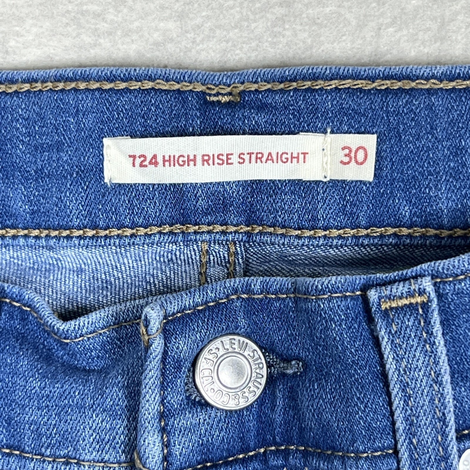 как выглядит Levis 724 High Rise Straight Jeans Womens 30 Blue Medium Wash Stretch Denim фото