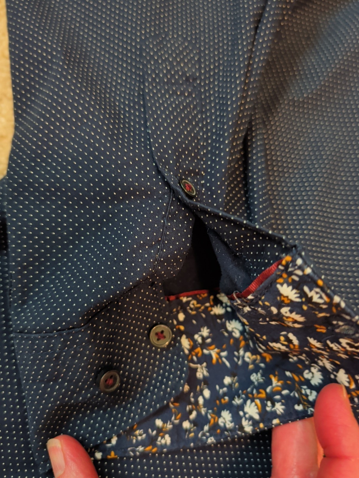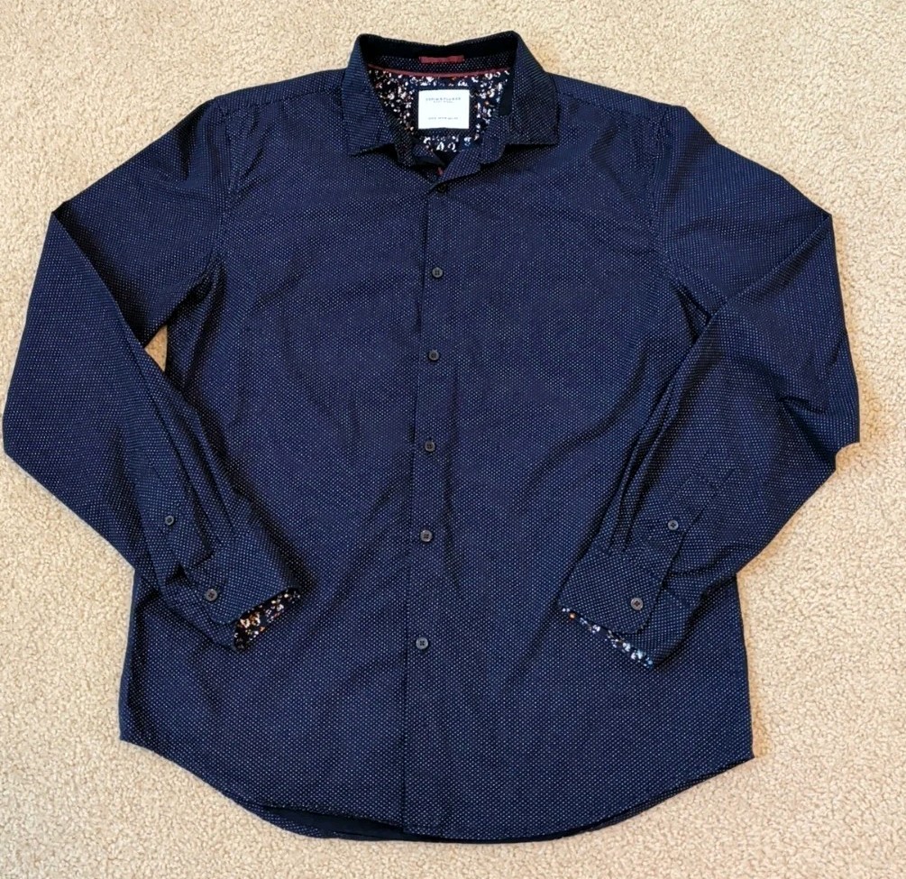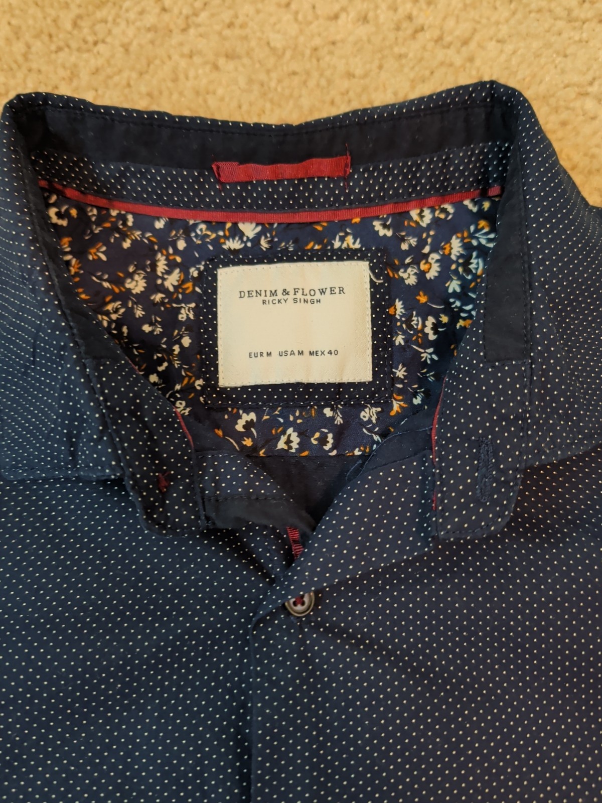 Denim Flower Ricky Singh Men s Button-Up Shirt Sz Medium Blue Dot 100 Cotton