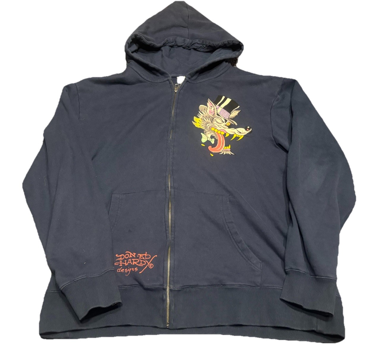 VTG Y2K Ed Hardy Men s Hoodie XXL Wolf Graphic Zip Sweatshirt Audigier L2