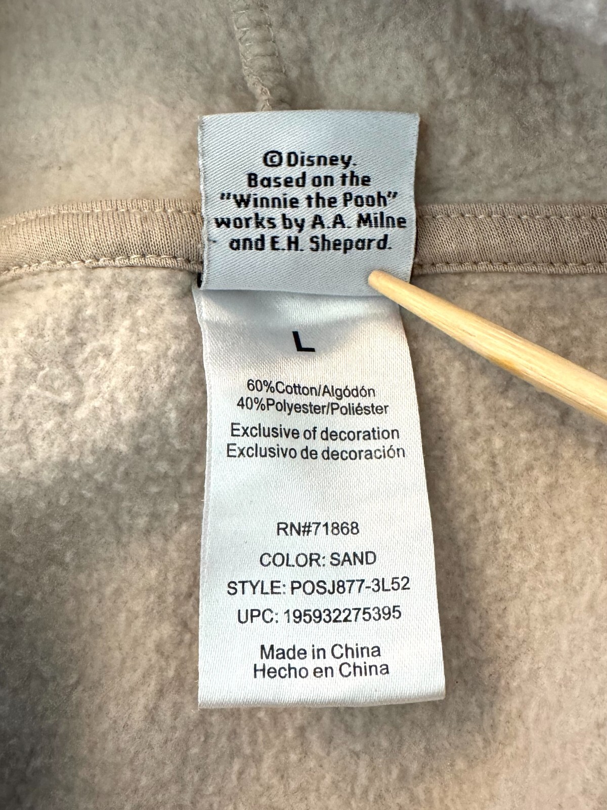 Winnie The Pooh Hoodie Disney Women's Sz L Sand Sweatshirt Pullover Vintage Y2K
