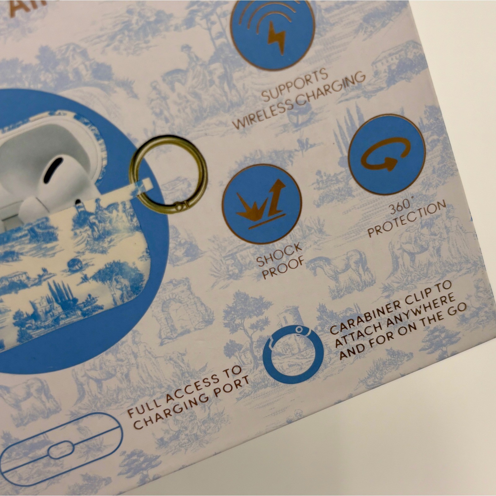 как выглядит XO Poppy AirPods Pro Case Blue White Toile de Jouy Shockproof Wireless Charging фото
