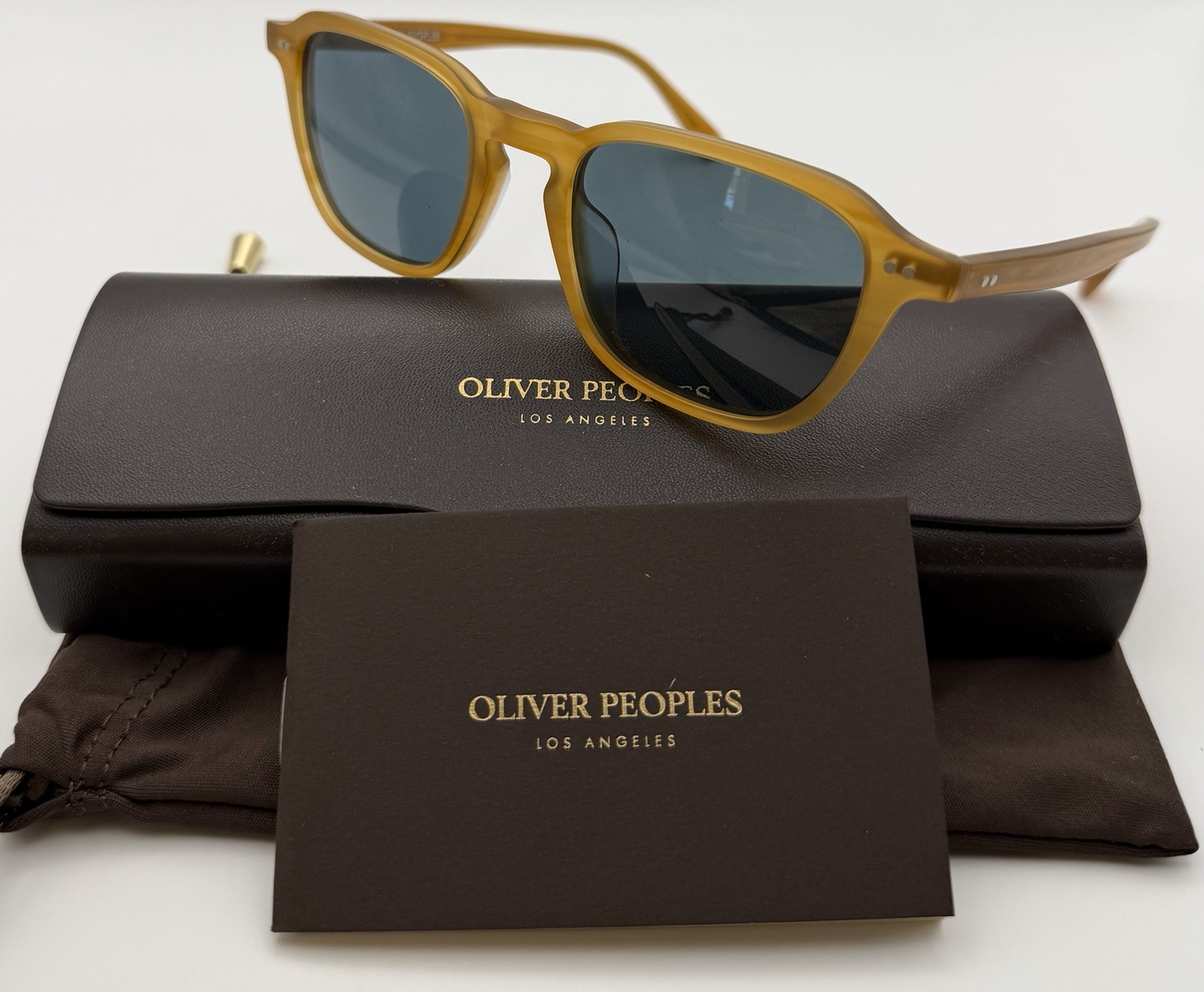 как выглядит Oliver Peoples Emryn OV5598SU 1779R5 - Semi-Matte Goldwood / Blue Lens 50MM фото