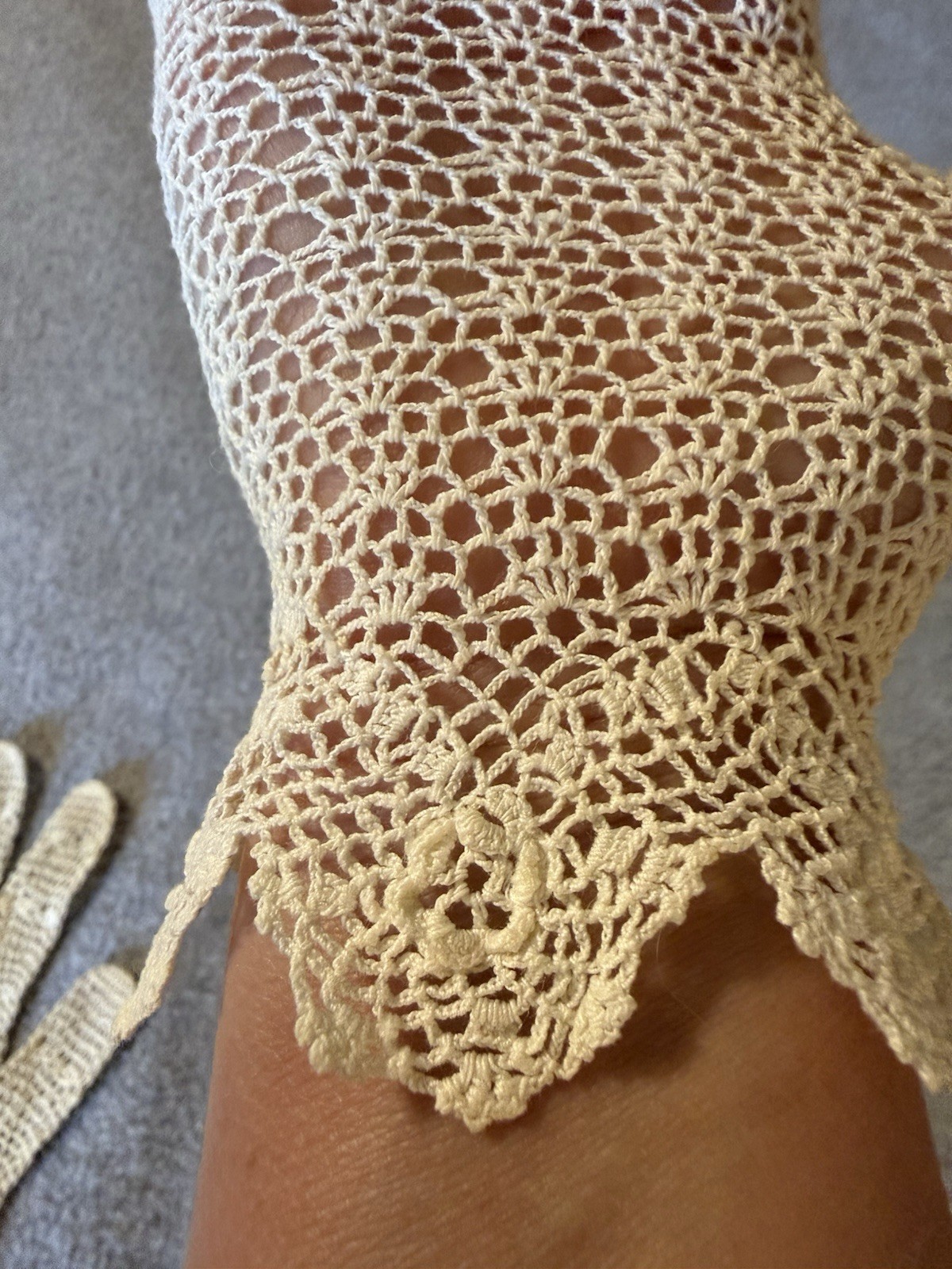 как выглядит Beautiful Antique Vintage Ladies Womens Crocheted Gloves Small Ivory Formal фото