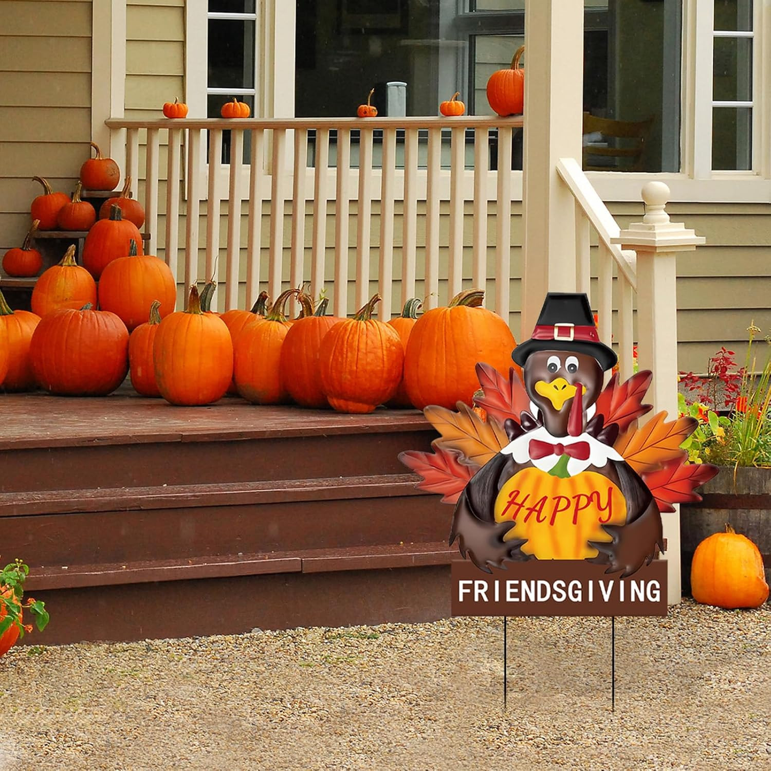 Friendsgiving Metal Turkey Yard Signs Rustic Thanksgiving Decorations with Stake