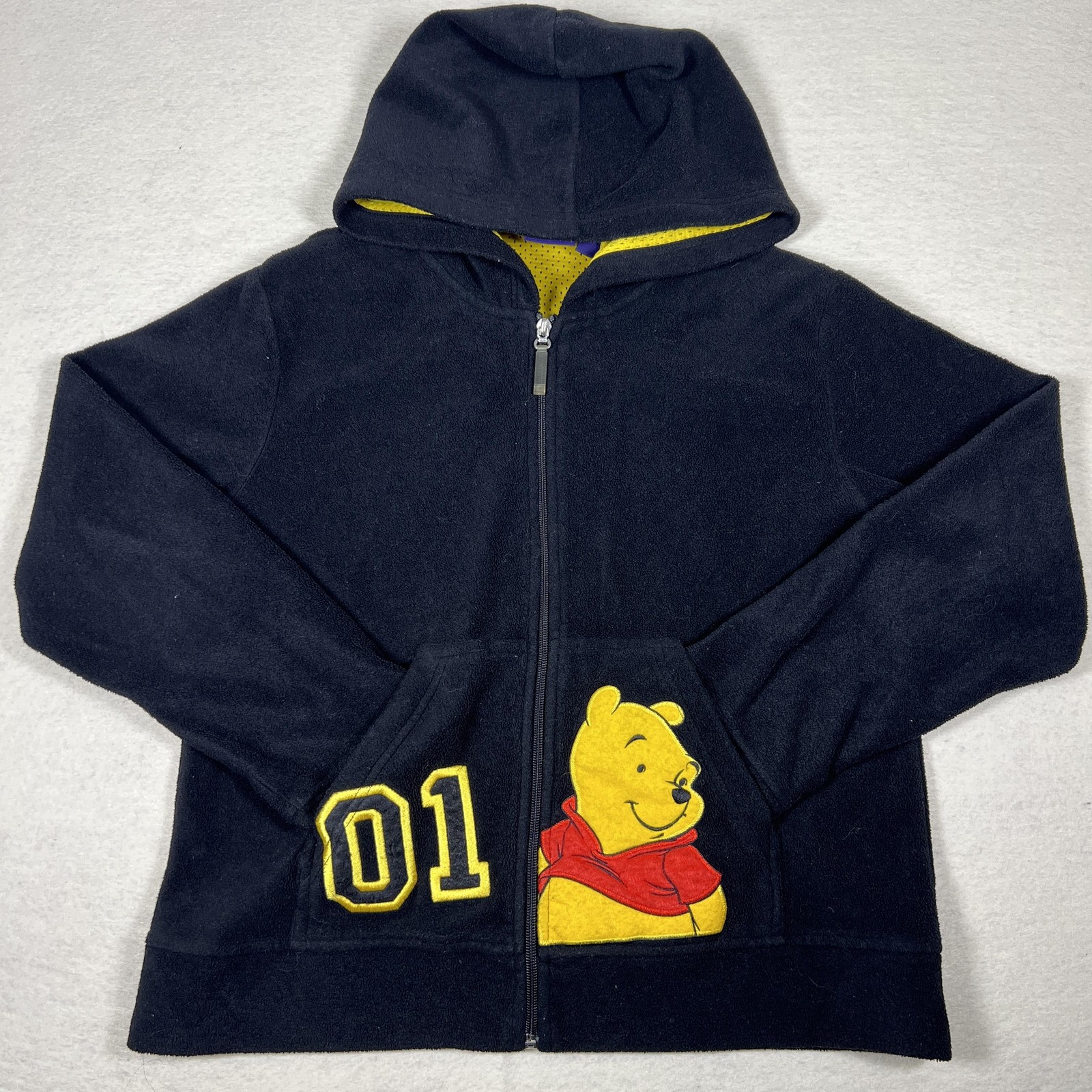 как выглядит Disney Winnie The Pooh Hoodie Womens M Black Fleece Zip Up Y2K фото