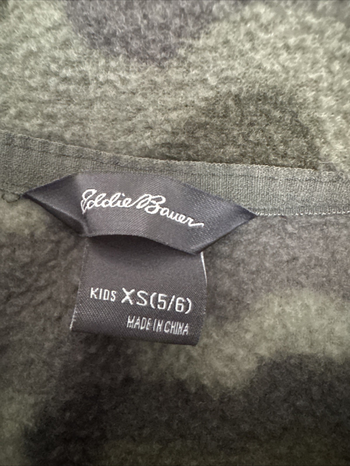 Eddie Bauer Kids Fleece Pullover Size XS 5/6 Green Camo Quarter Zip Warm Jacket