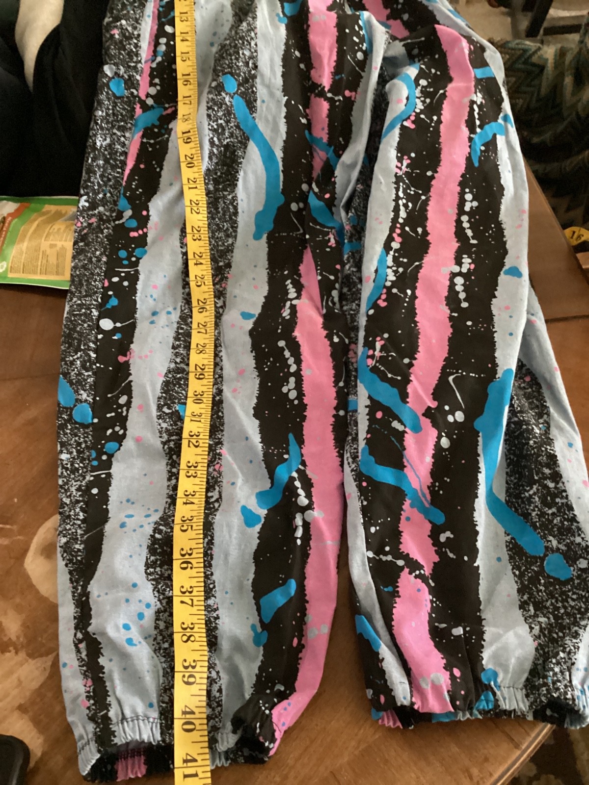 как выглядит Vintage International BAGGYZ Parachute Gym Pants 80s Color Splash Sz M USA MADE фото